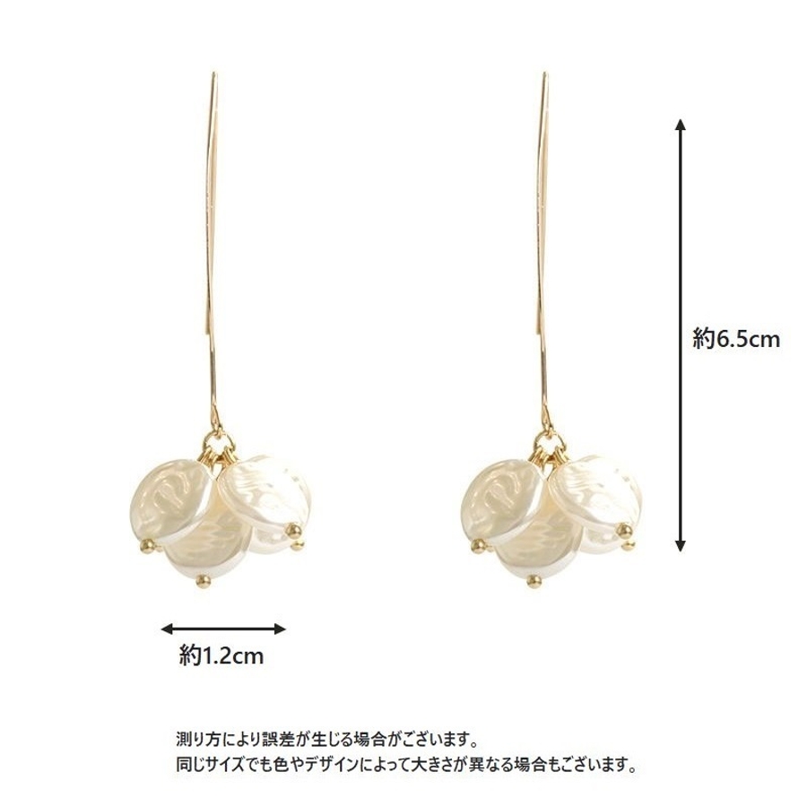 投稿日:2022.07.06パール系のピアスが大好きで購入しました。付けるのが少し怖いですが、揺れてとてもかわいいので気に入りました。
