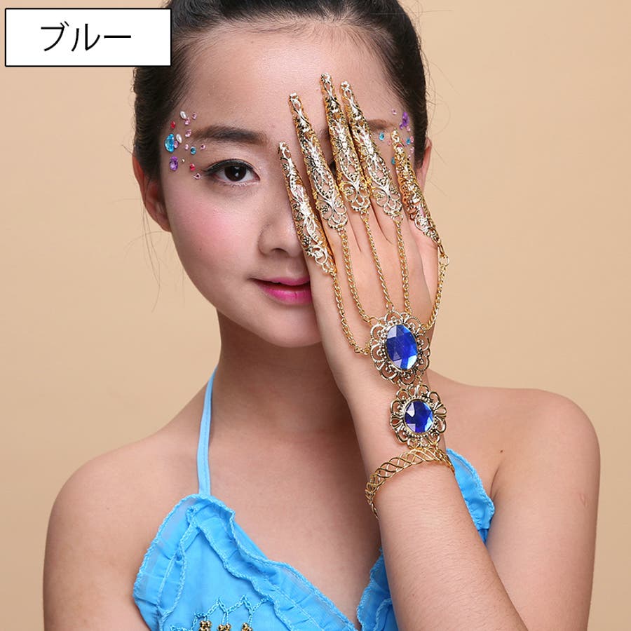 長い爪のようなフィンガーリングとブレスレットがつながったハンドアクセサリーです♪
