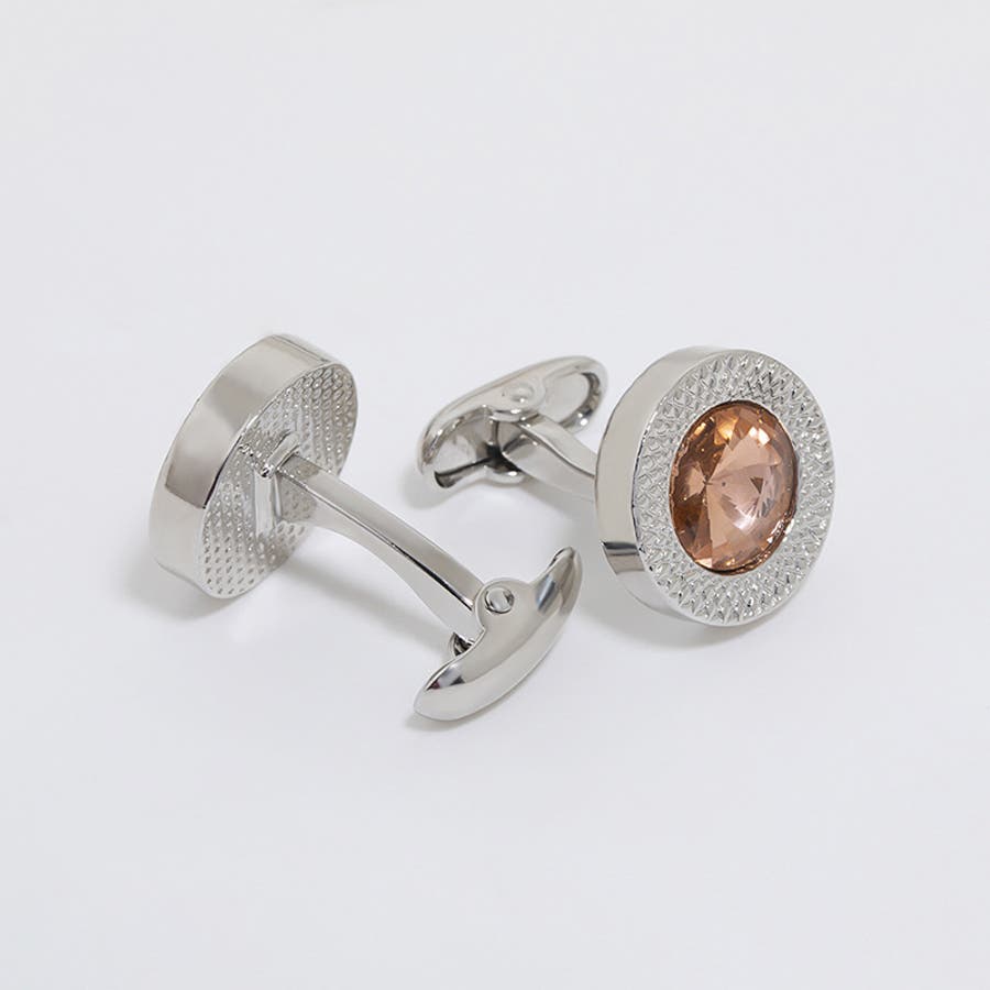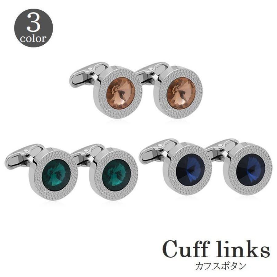 大ぶりのラインストーンが目を引く、ラウンド型のカフスボタン。