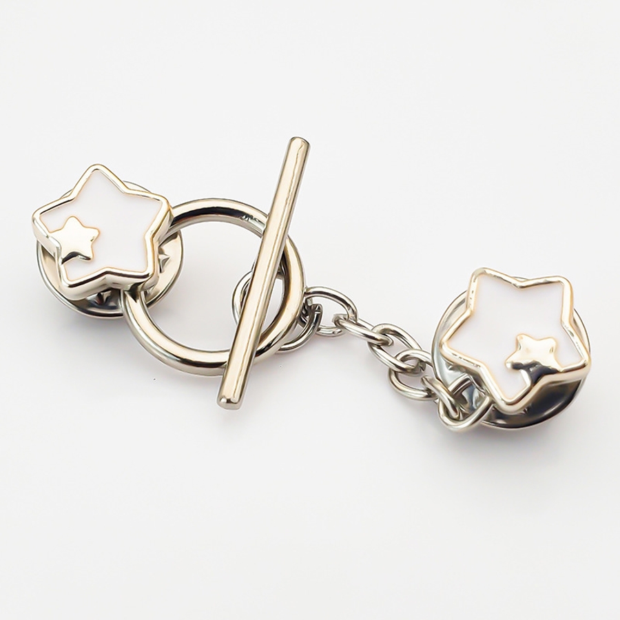 ボタン等が付いて無いアウターの為に購入しました。予想より小さかったですが、まぁまぁさりげなく使える感じです。