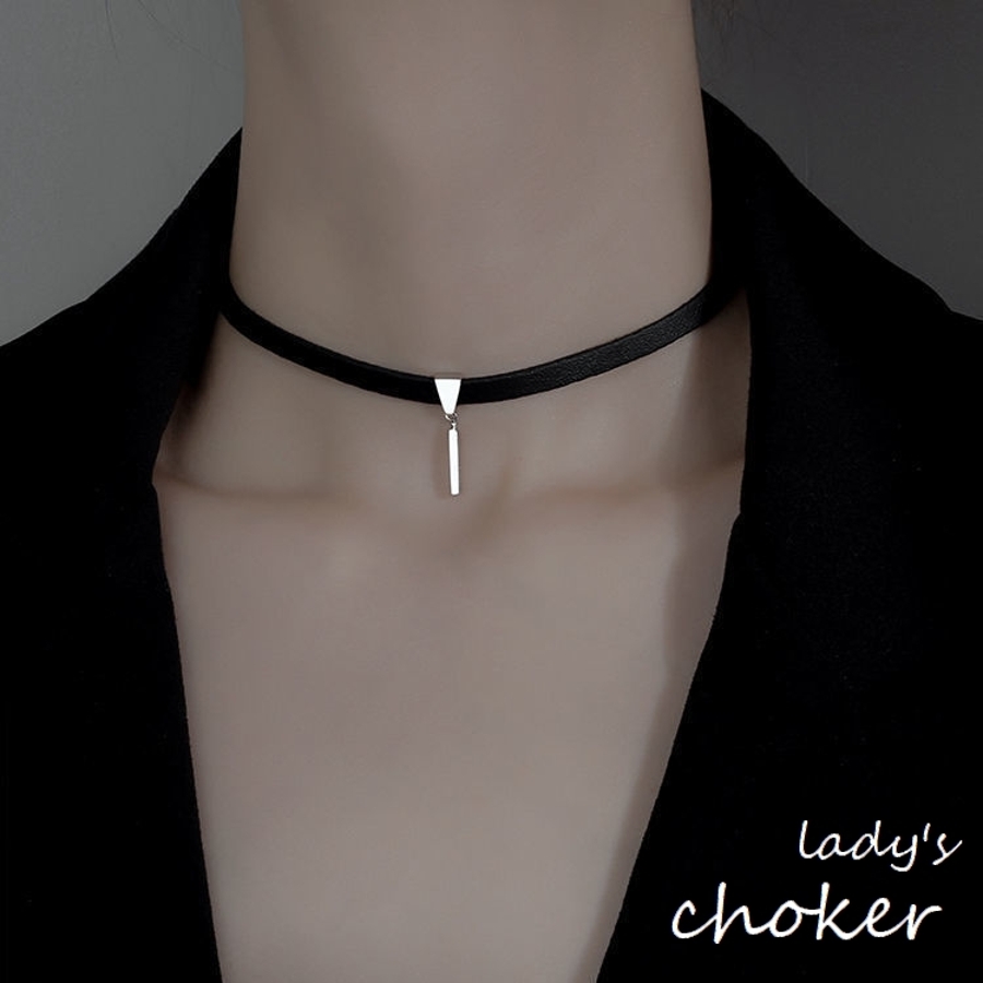 シルバーチャームがとってもお洒落な細めのチョーカーです。