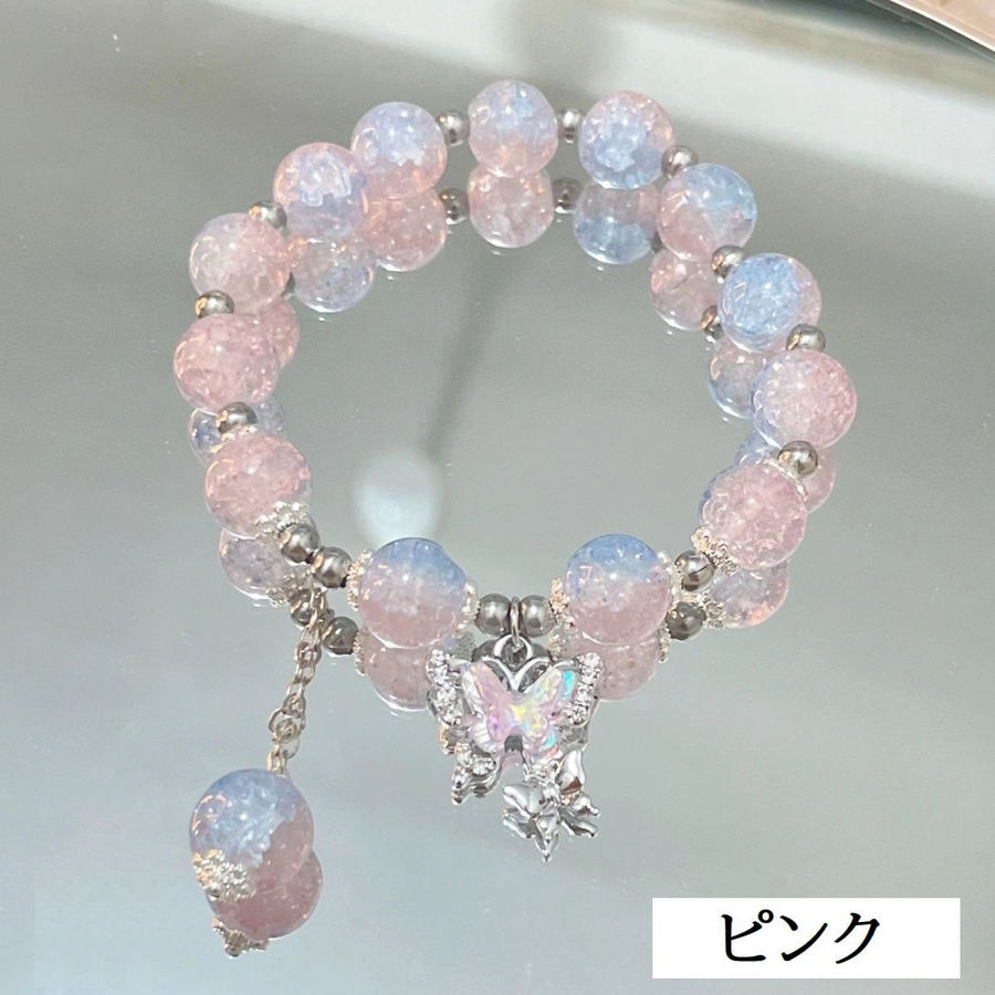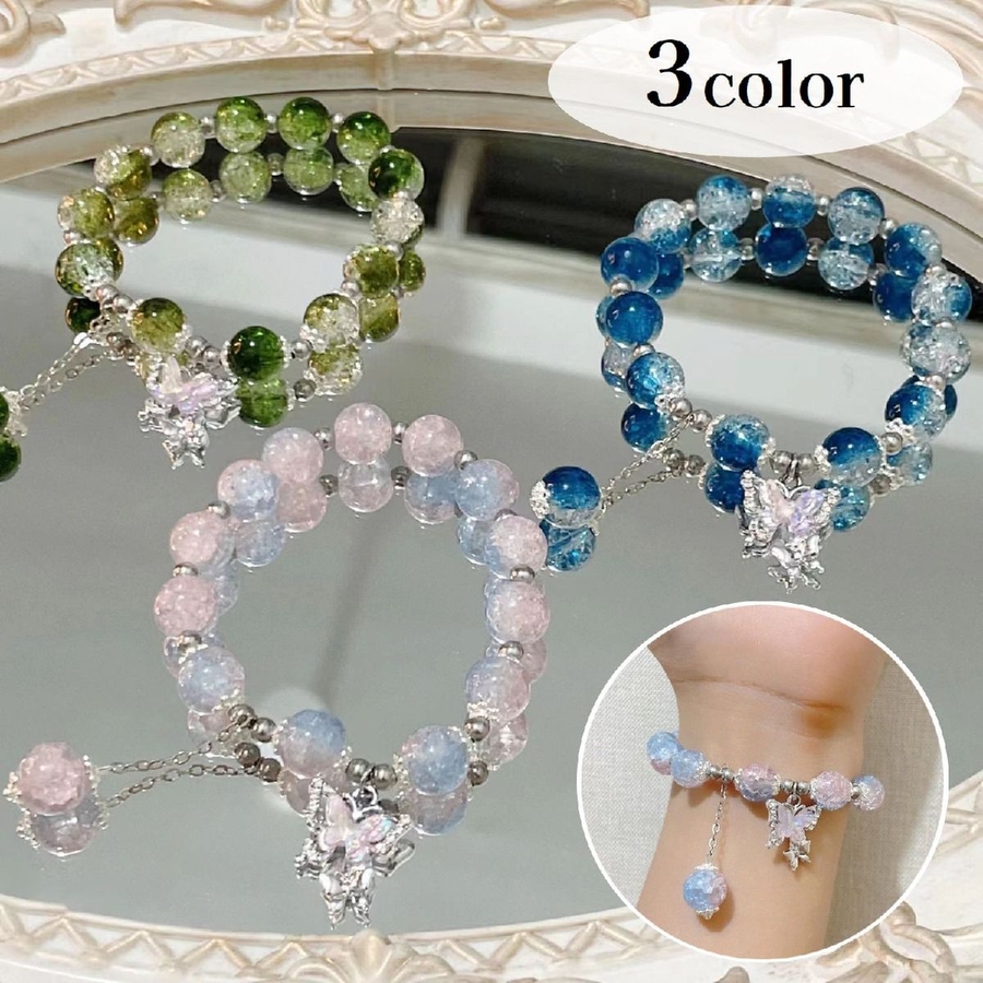 綺麗な色合いのビーズと蝶の飾りがおしゃれなデザイン♪