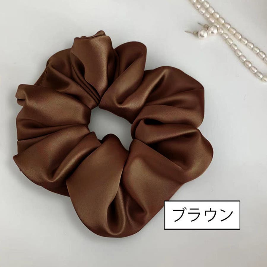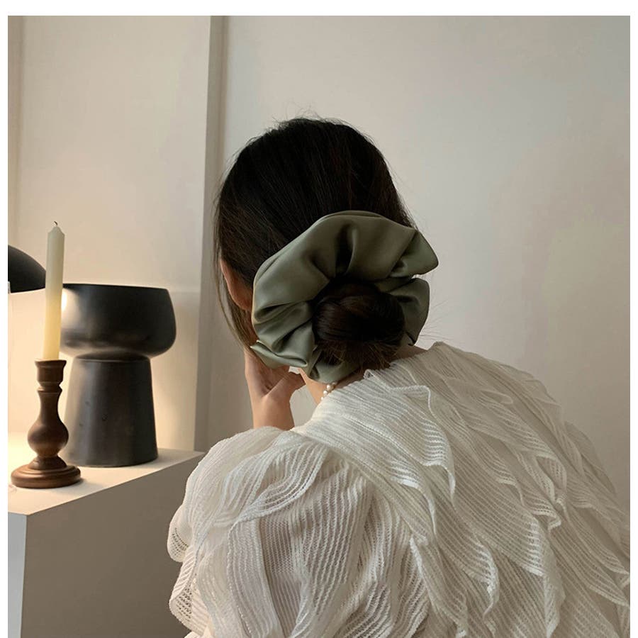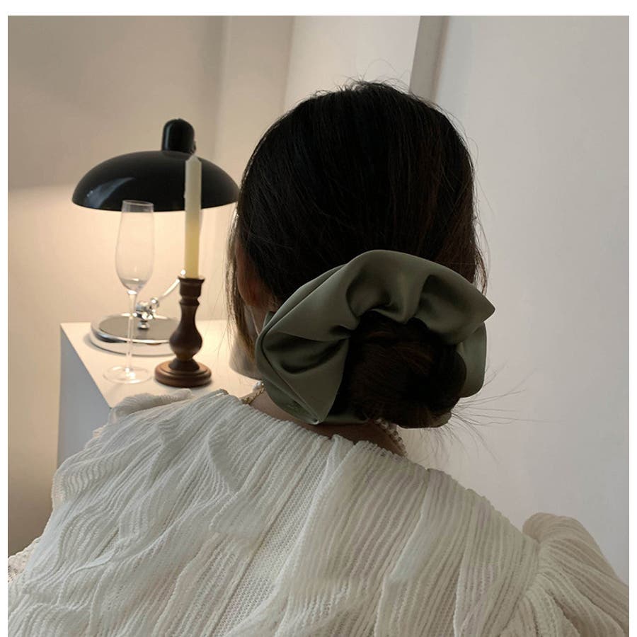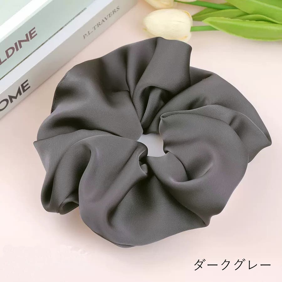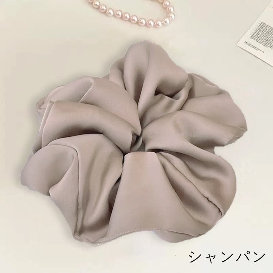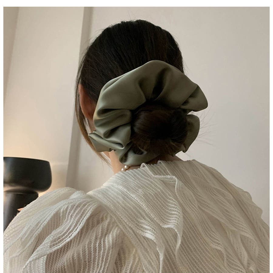 シンプルでありながら女性らしい華やかな印象にしてくれるサテン調シュシュ。