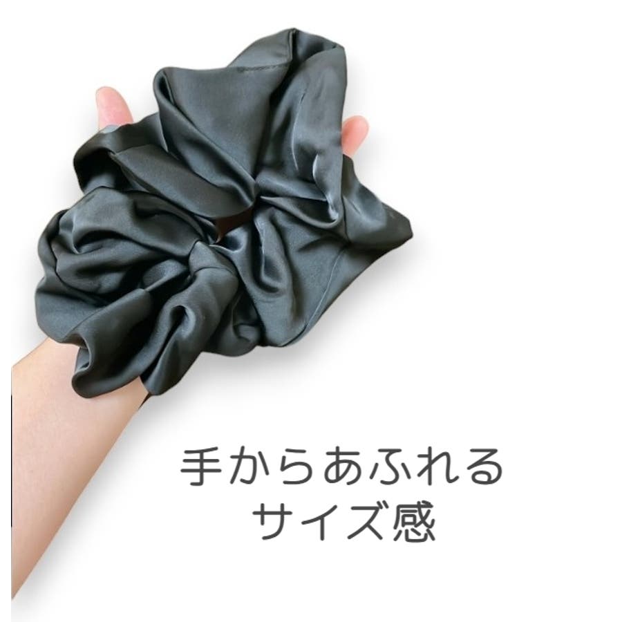 手からはみ出るほど大きなシュシュ。1つで抜群の存在感です。