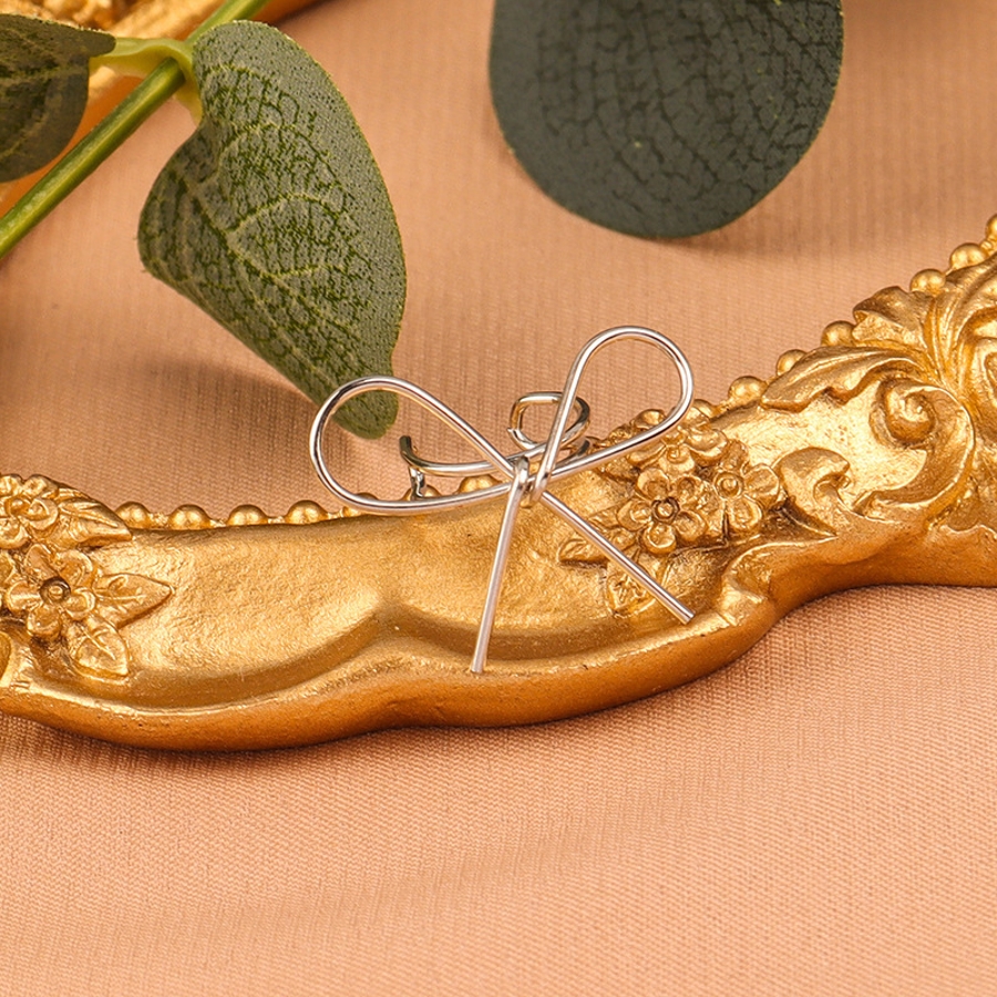 ゴールドなので針金感は薄くて良かった(笑) 華奢で可愛いです。ですが付けても画像のようにリボンが見えない。付け方というより、クリップ部分の造りに個体差があるのかも。
