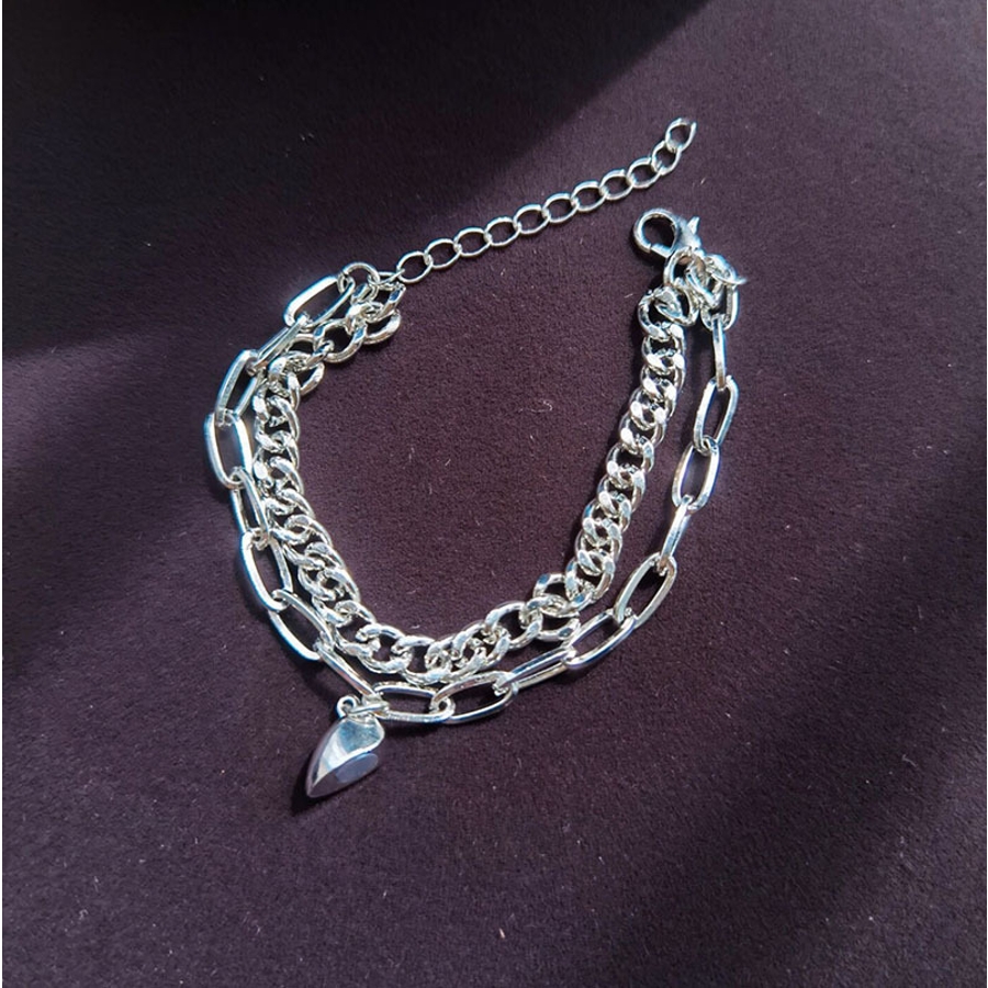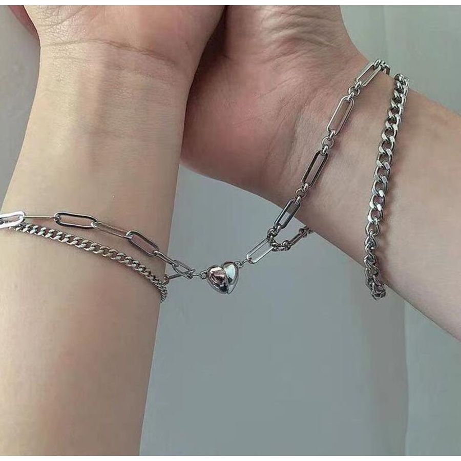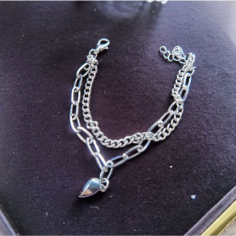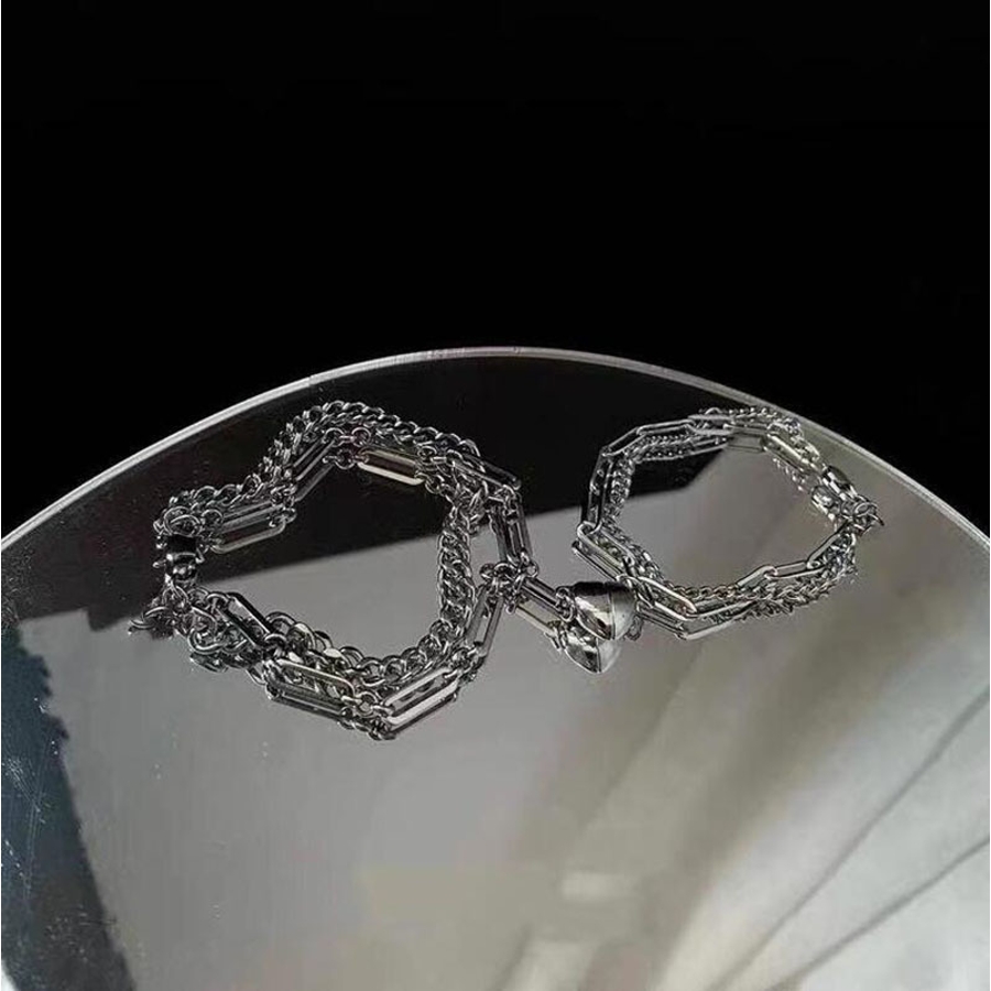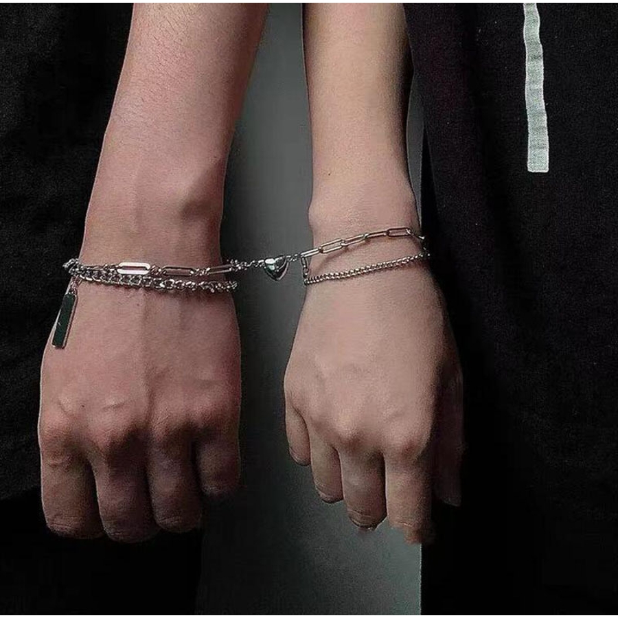 異なるダブルのチェーンもおしゃれなペアブレスレット。
