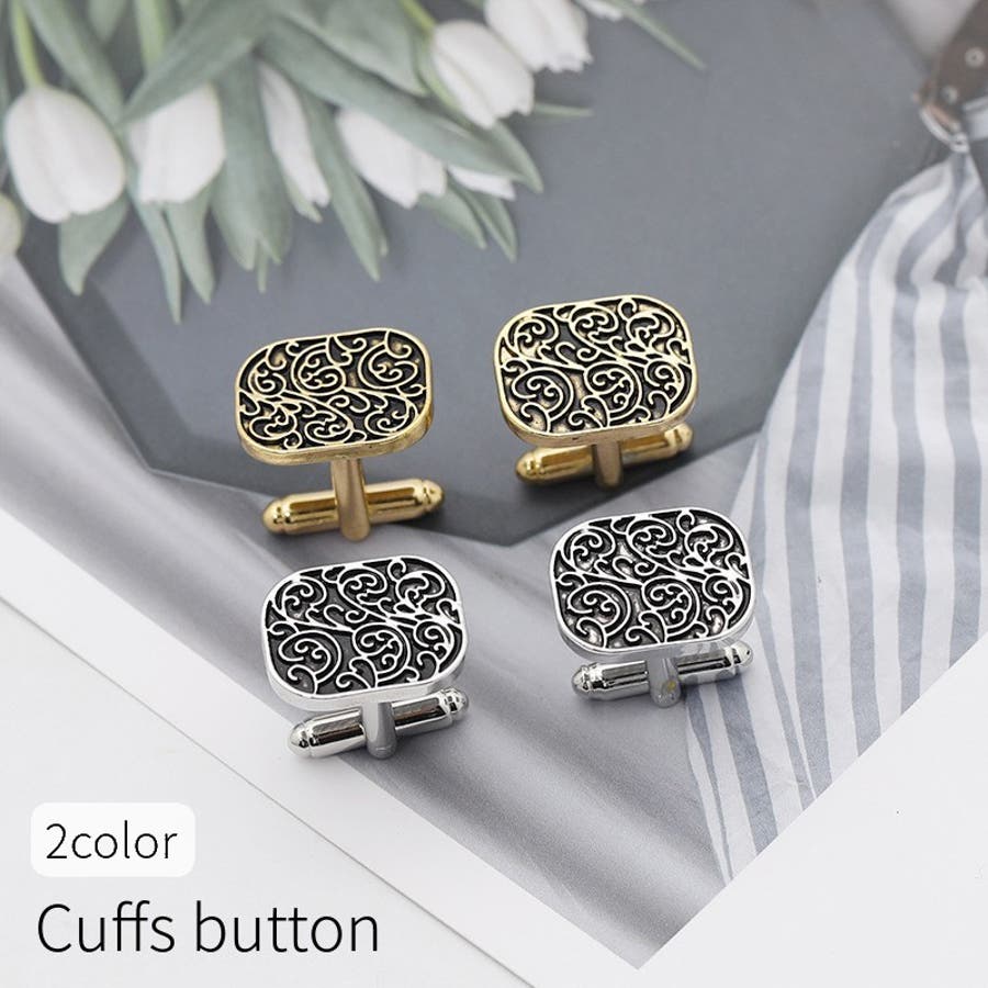 草花の弦のような彫り模様がおしゃれなメンズカフス。