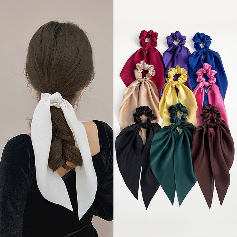 大人可愛いロングリボンのレディース用シュシュです。