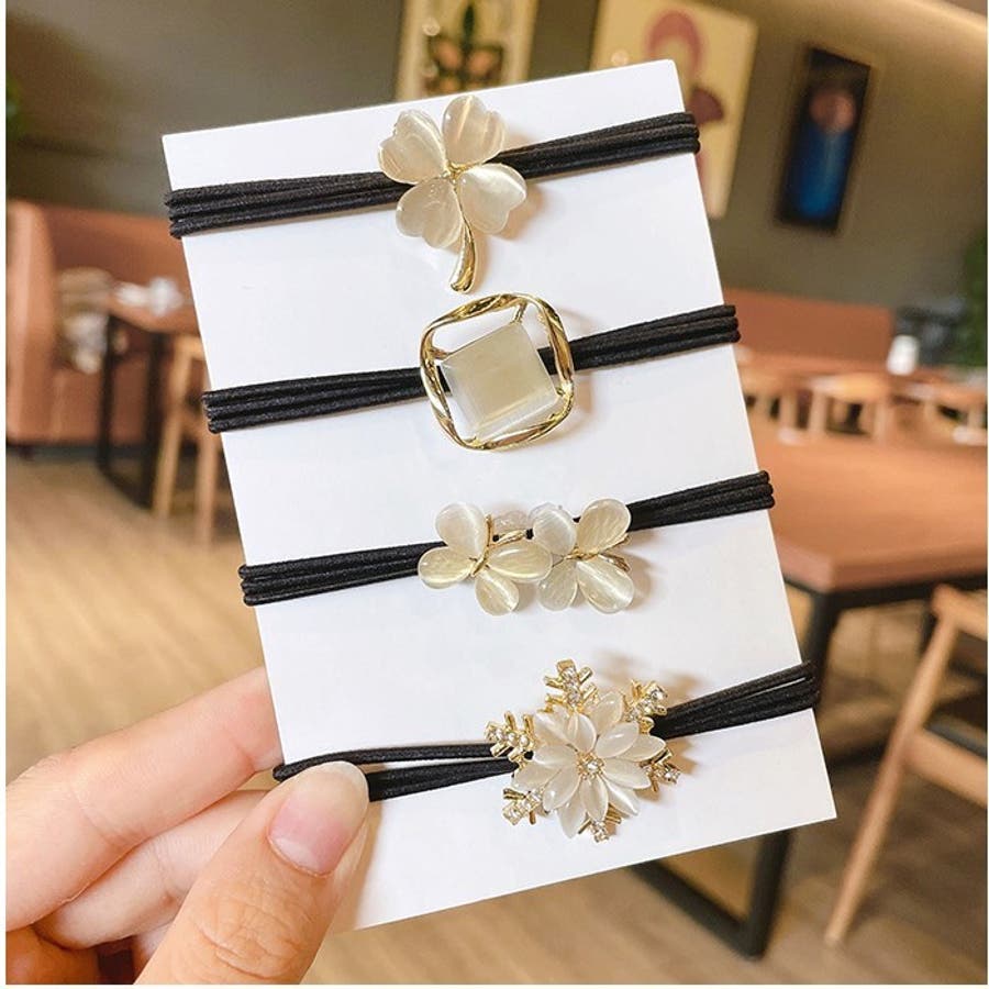 キャッツアイ風ストーンがお洒落な3連ヘアゴムです。
