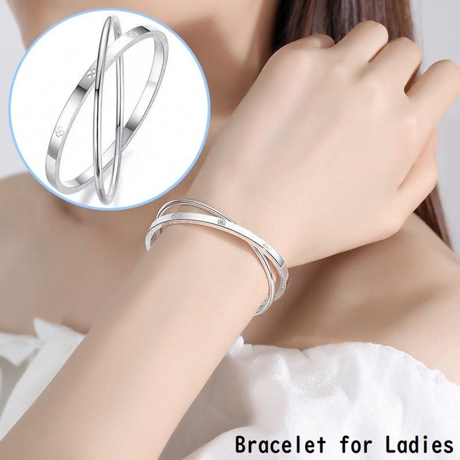 クロスした2重リングのレディース用ブレスレットです。