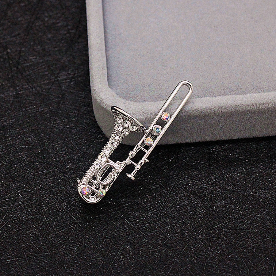 学生時代に吹奏楽部でトロンボーンを吹いており、たまたまこのブローチを見つけたので即決しました。