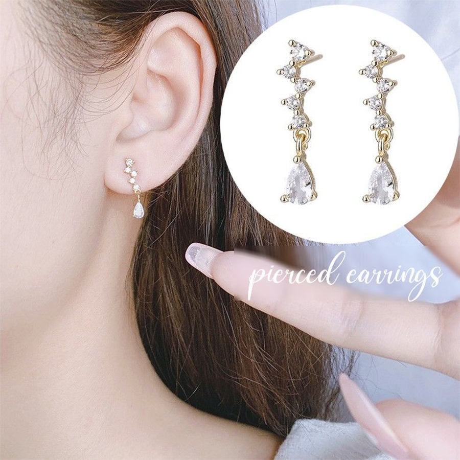 スタッドピアス ラインストーン レディース