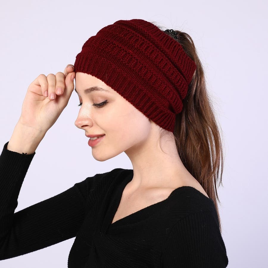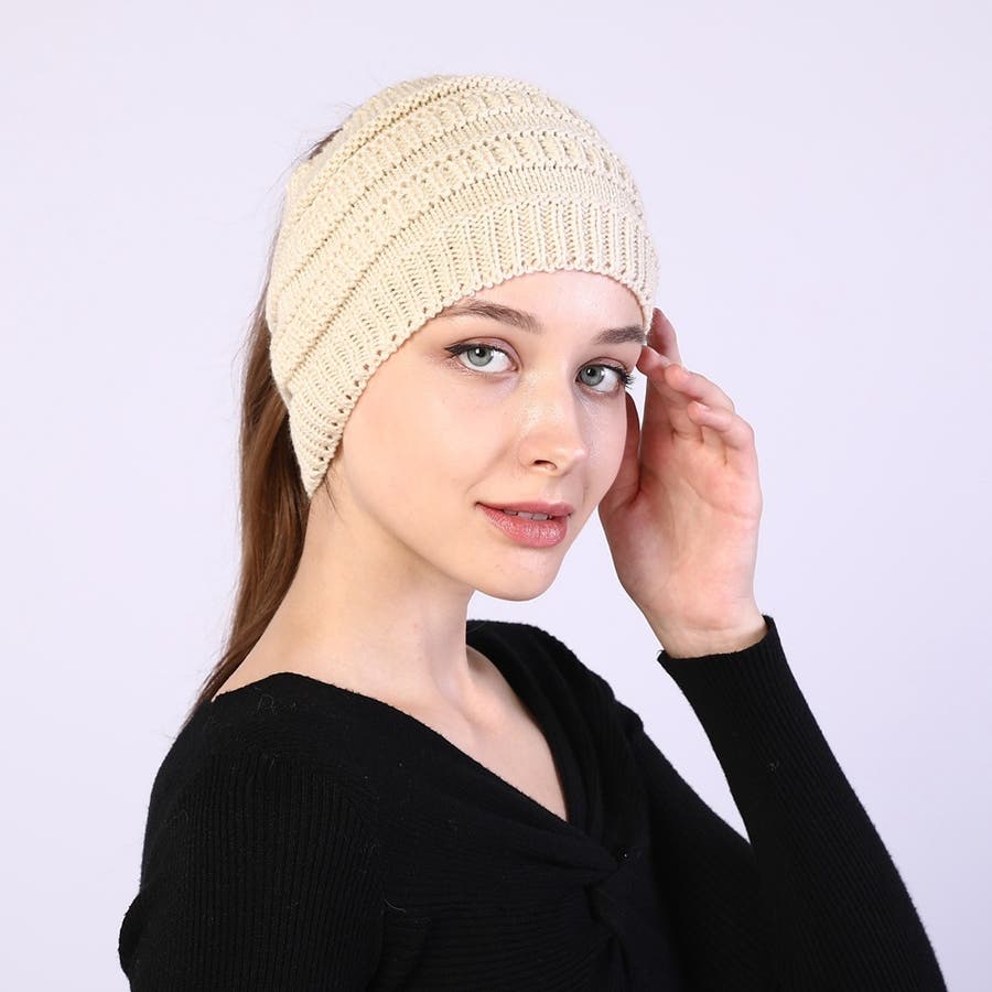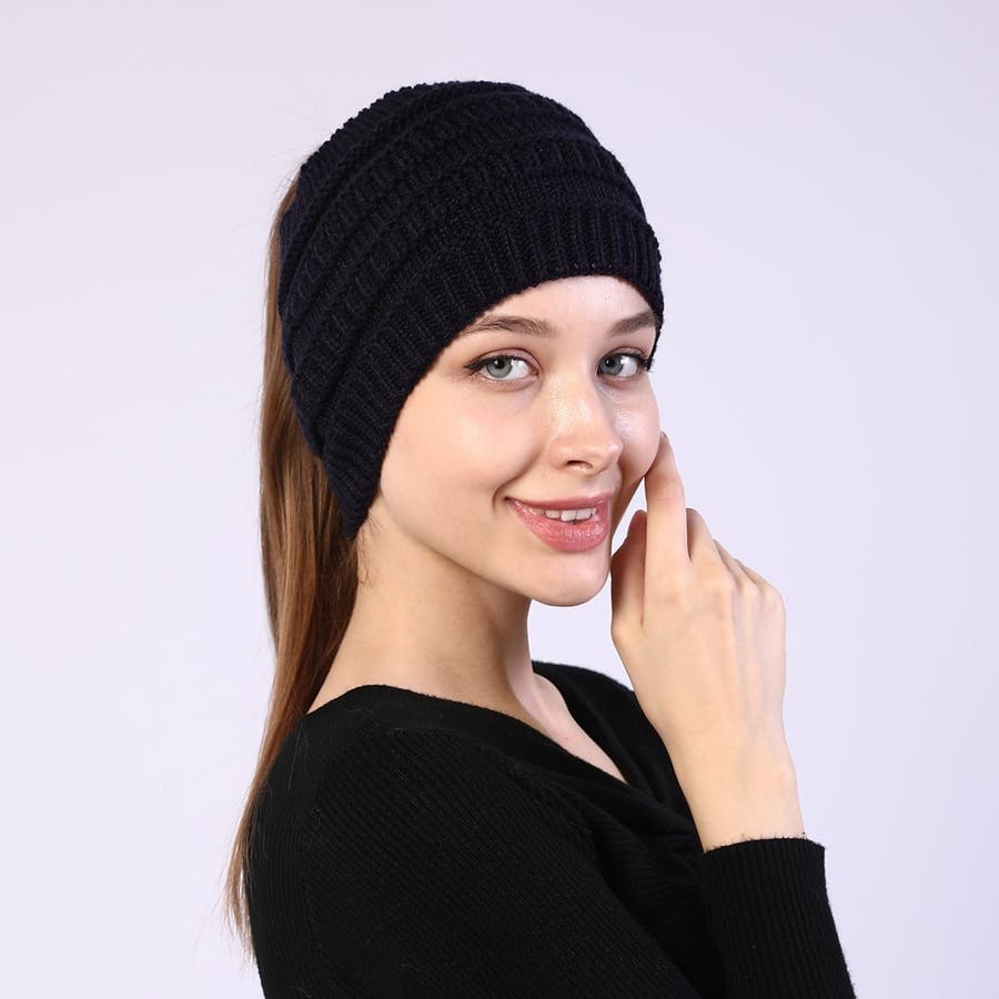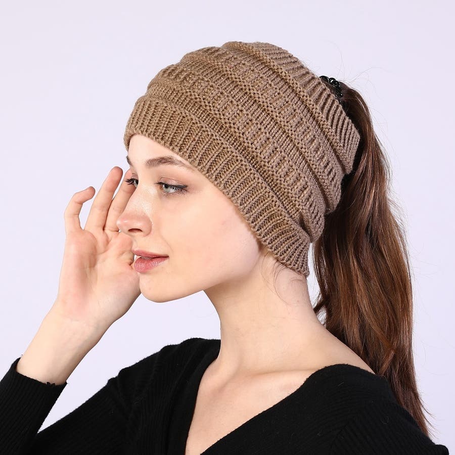 温かみのあるニットのデザインで、伸縮性もあり頭にしっかりフィット。