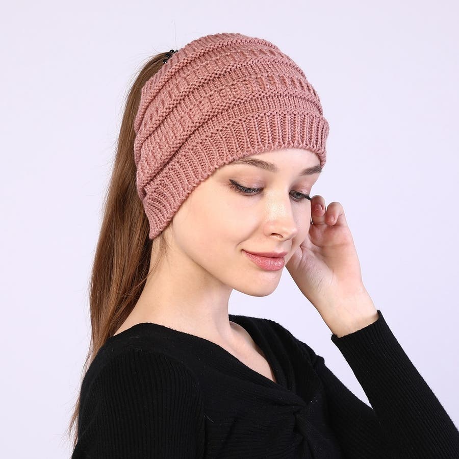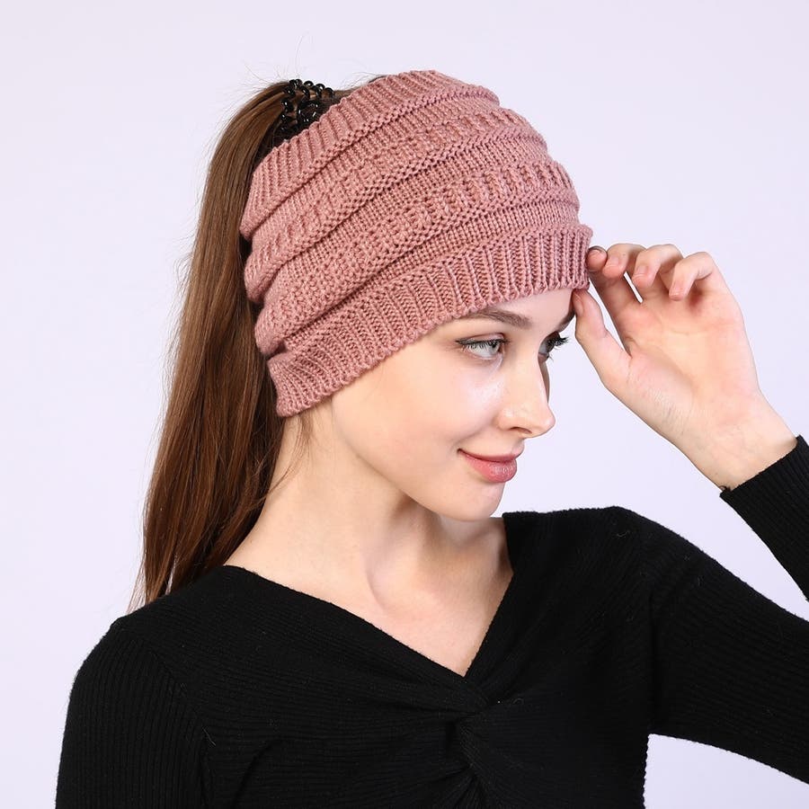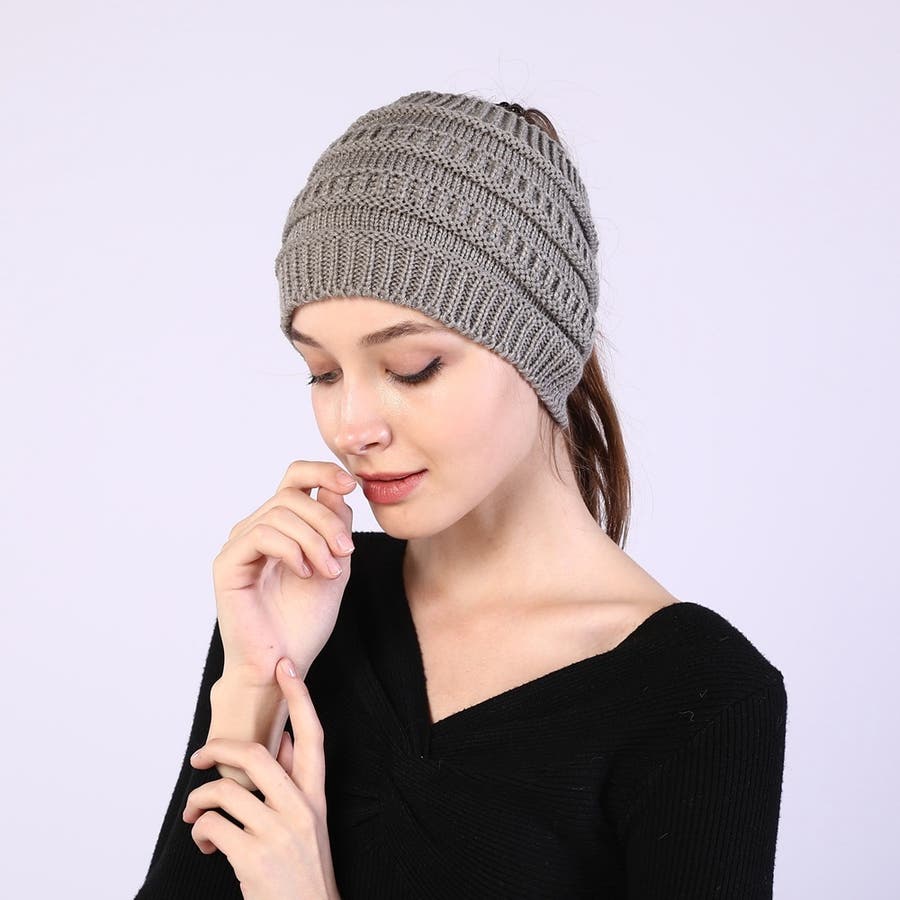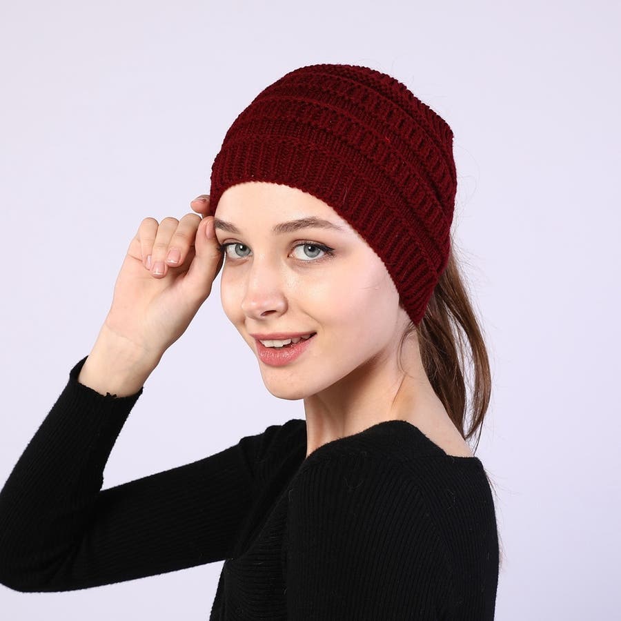 温かみのあるニットのデザインで、伸縮性もあり頭にしっかりフィット。