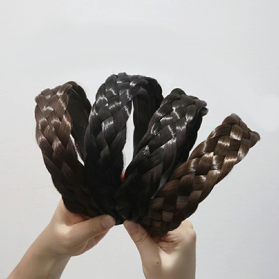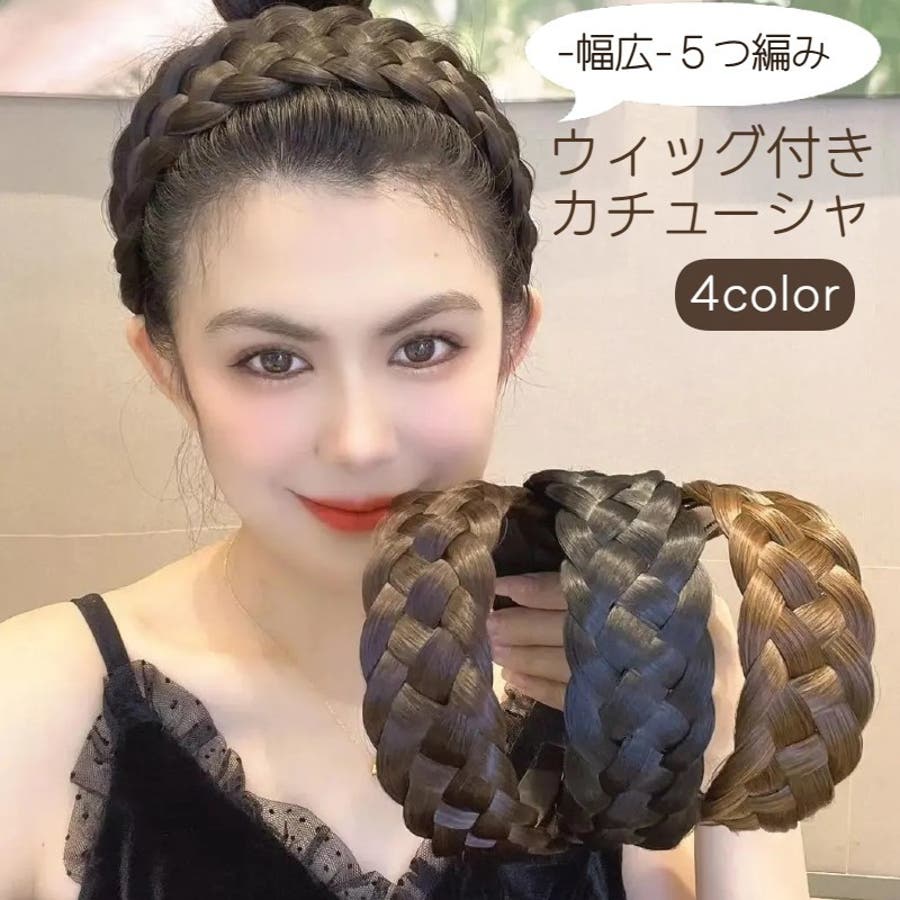 ふつうは3束の三つ編みですが、こちらのカチューシャは5束を使用した幅広デザイン!