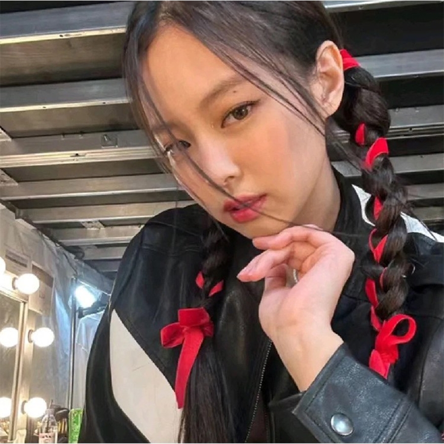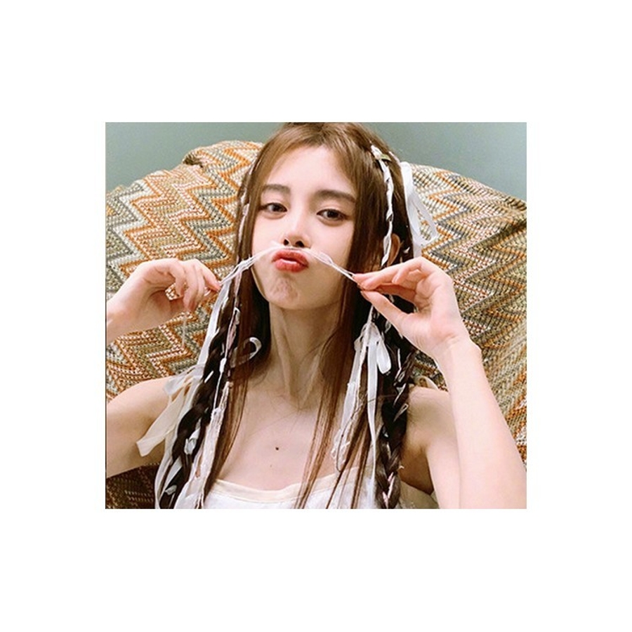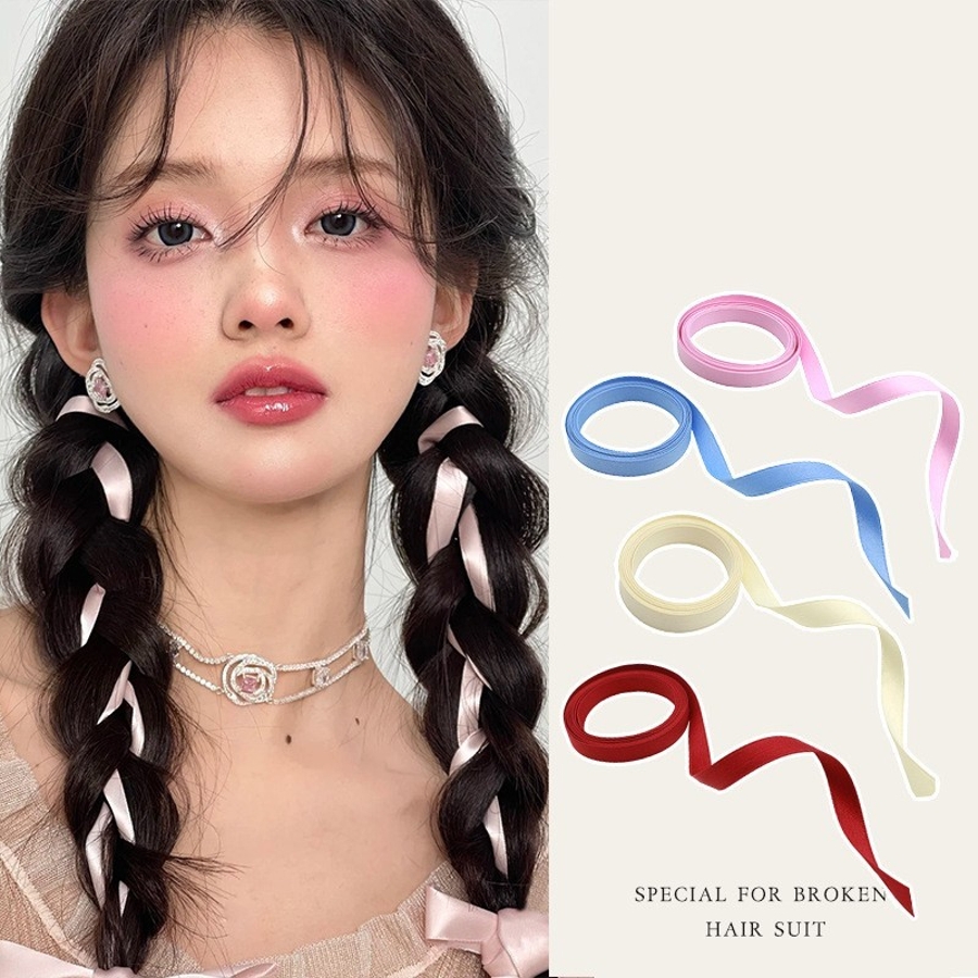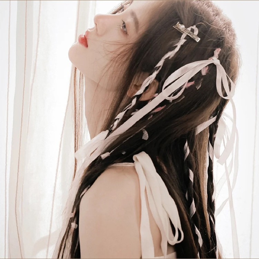 リボンと一緒に編み込んで華やかなヘアセットに◎