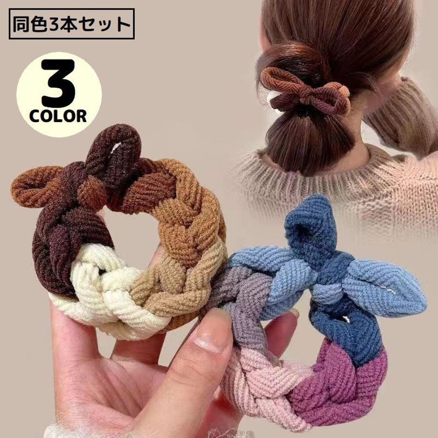 かわいいリボン付きのレディース用ヘアゴム同色3本セットです。
