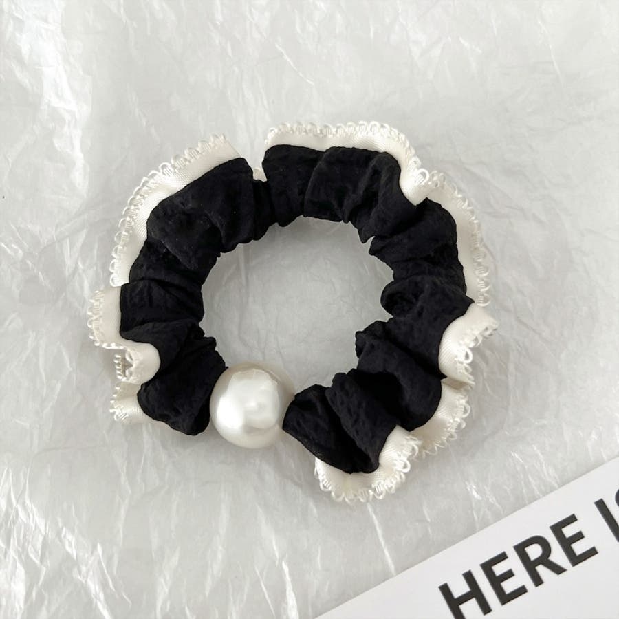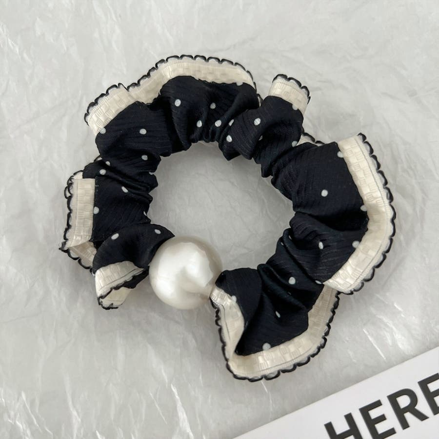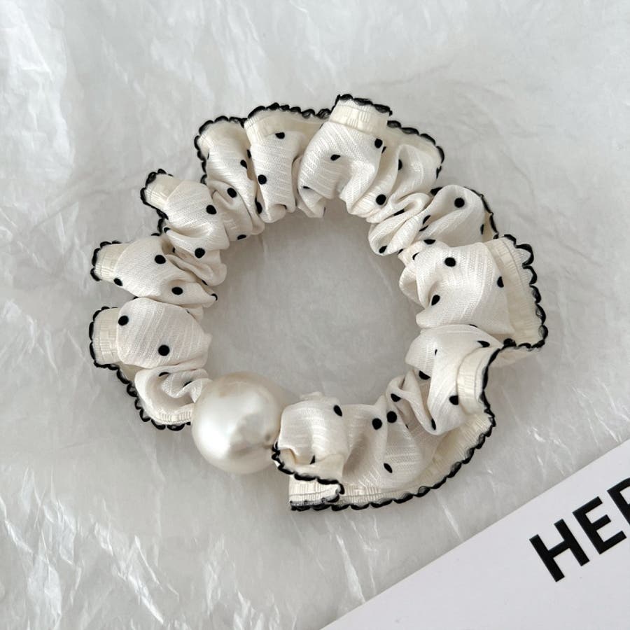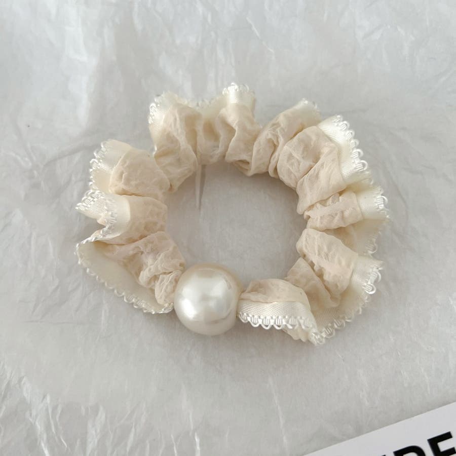 フェイクパールのついたお洒落なレディース用シュシュです。
