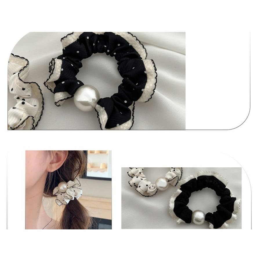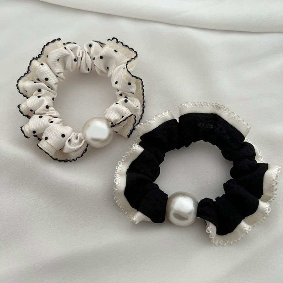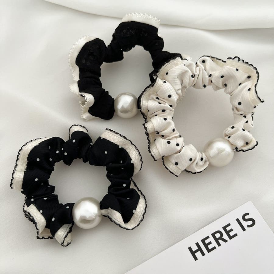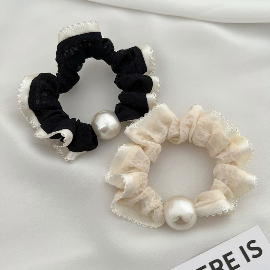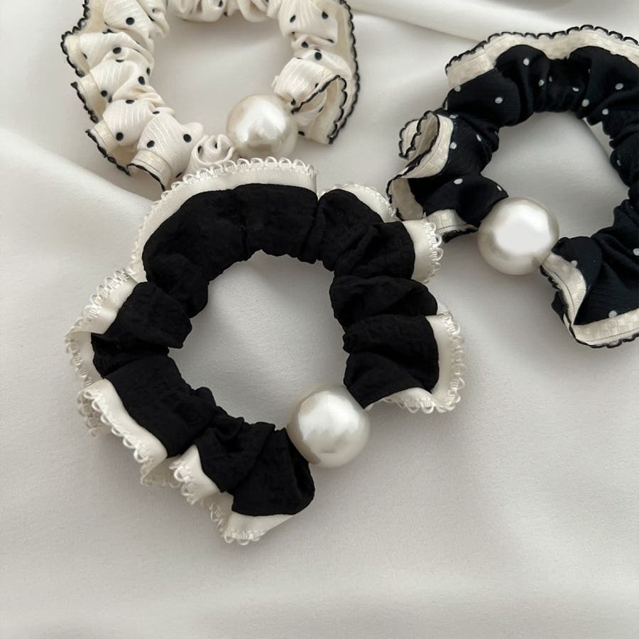フェイクパールのついたお洒落なレディース用シュシュです。