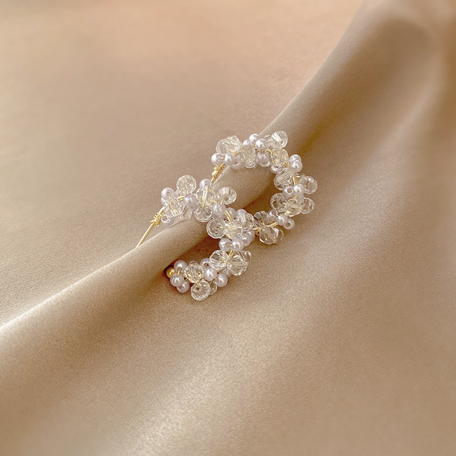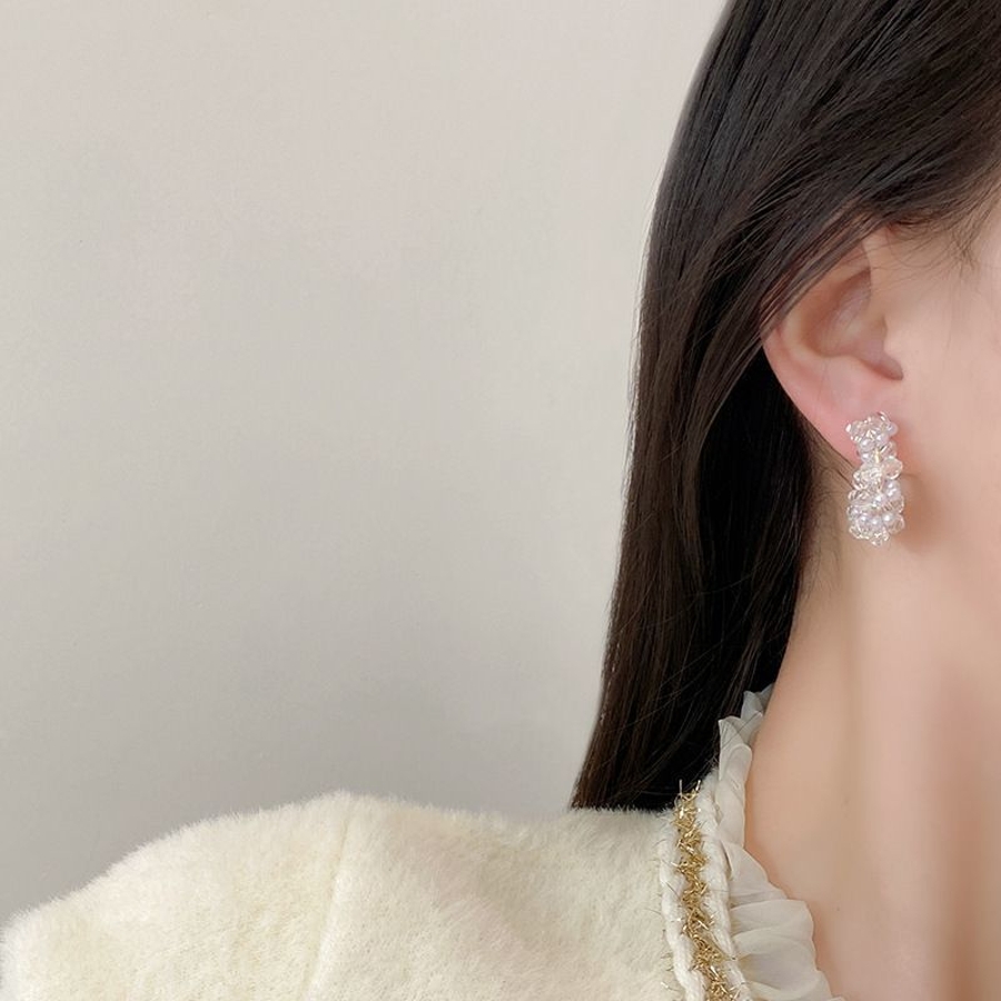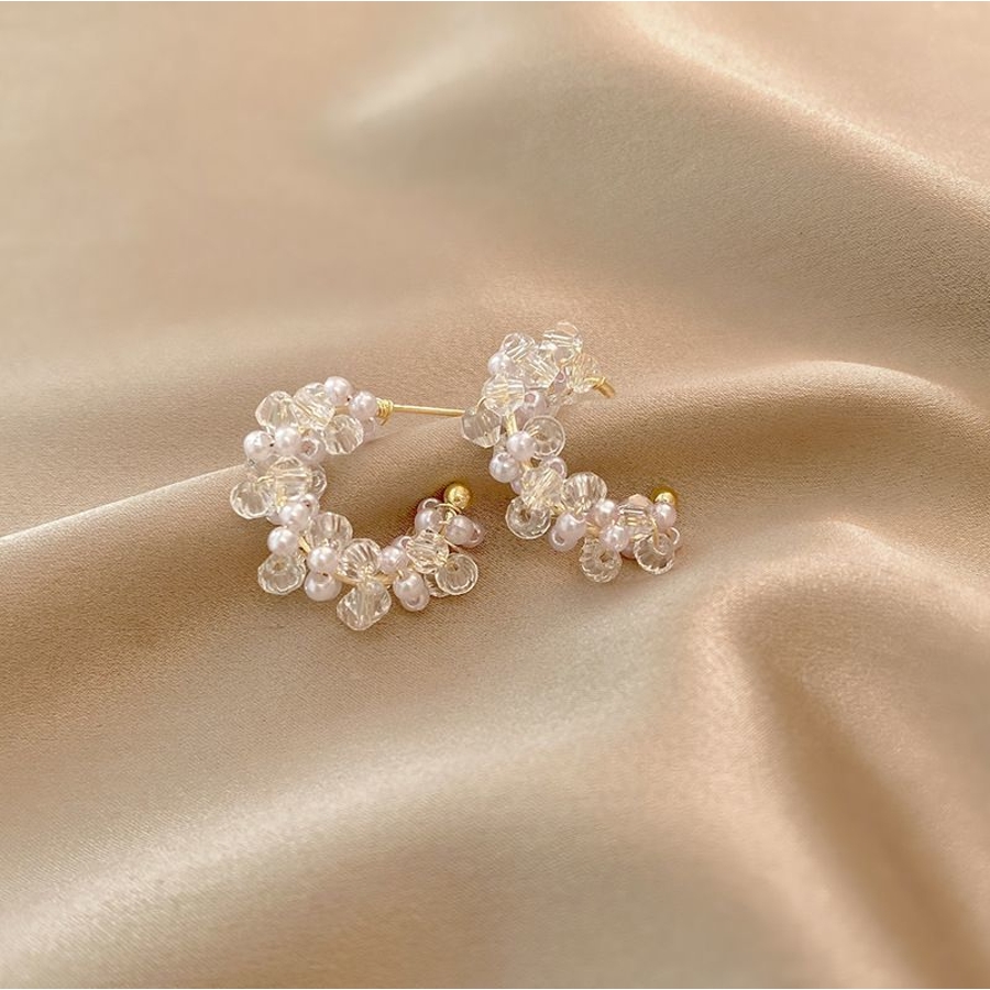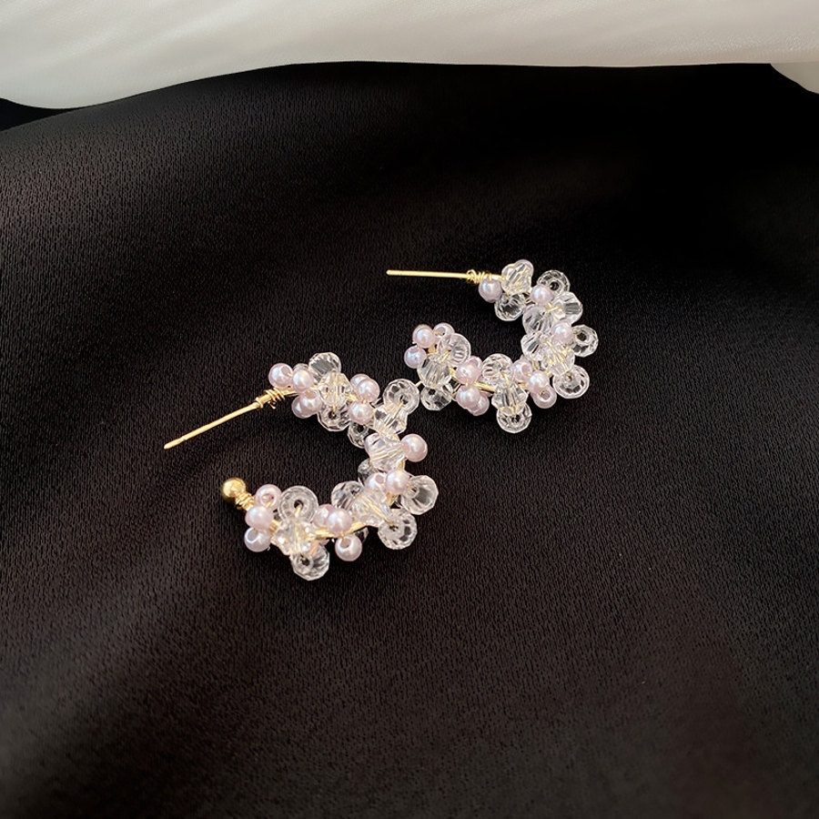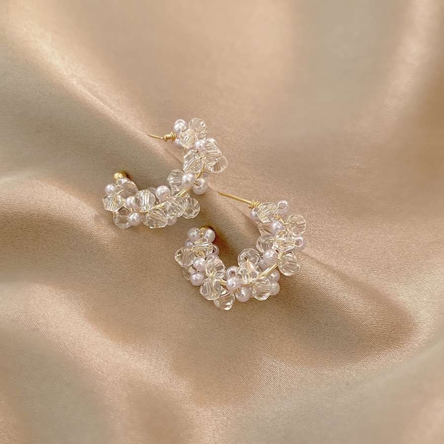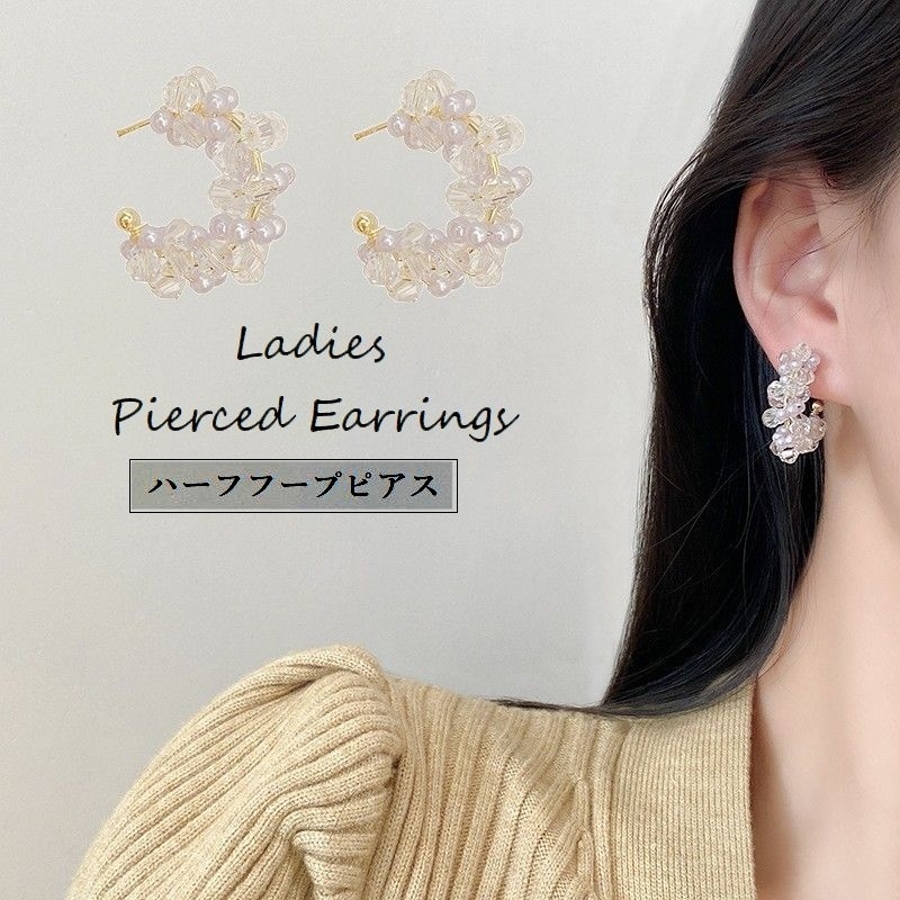 ラインストーンやビーズで彩られた飾りがおしゃれなハーフフープピアスです。