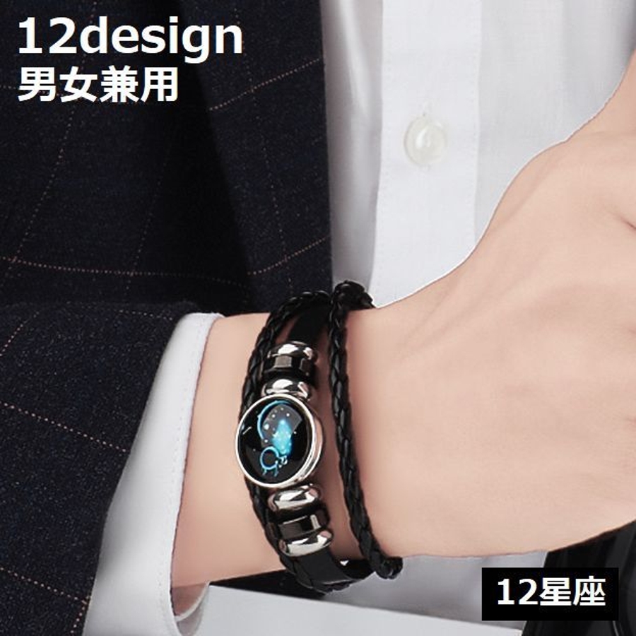 12星座モチーフの男女兼用フェイクレザーブレスレットです。