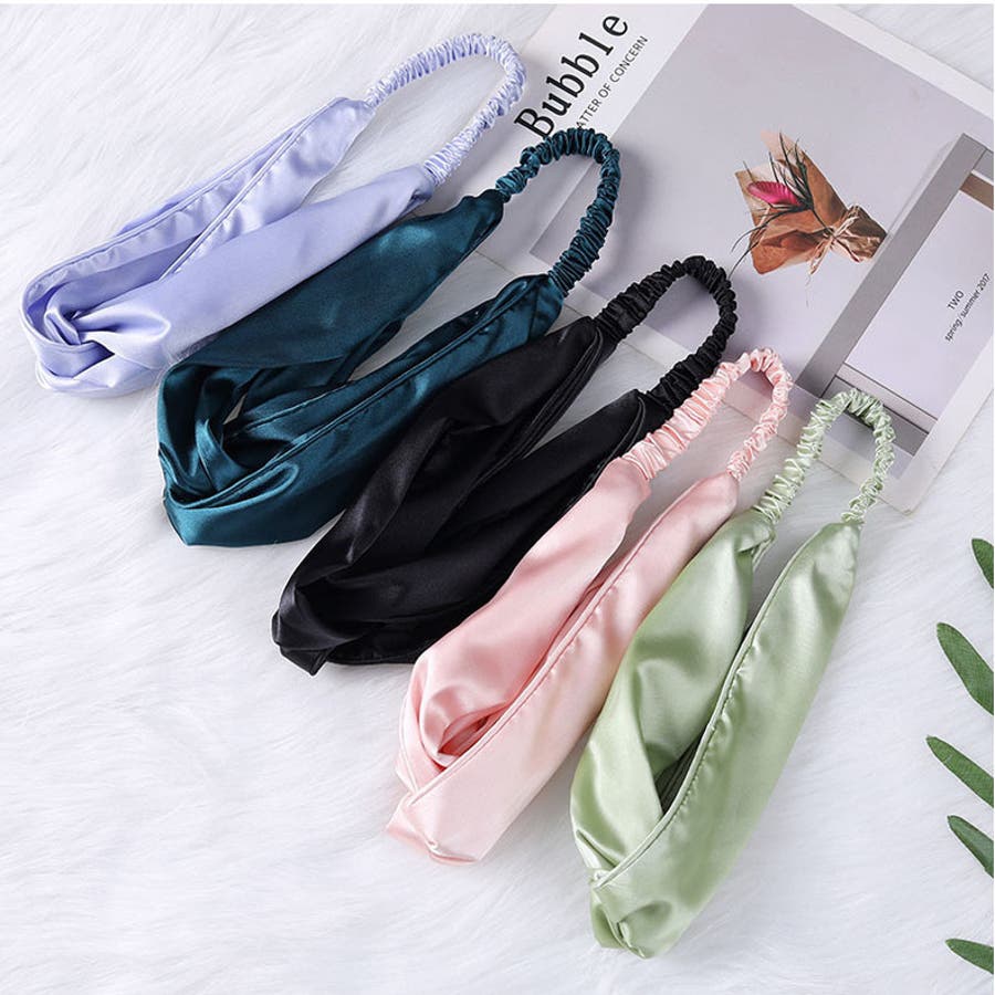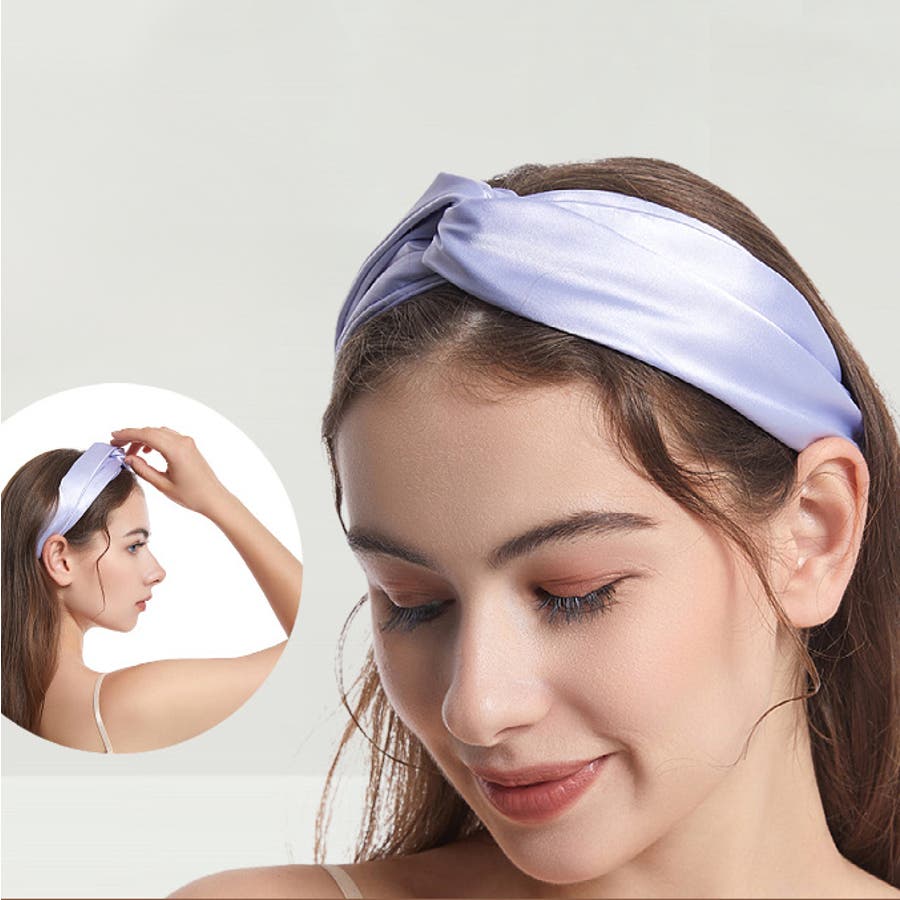サテン調のヘアバンドで上品カジュアルに◎