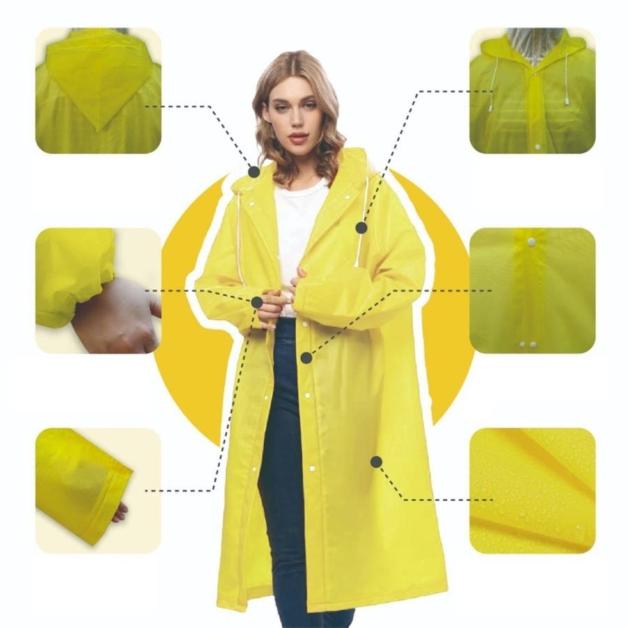 帽子付きでしっかりカバーできる、ロング丈の大人用レインコートです。