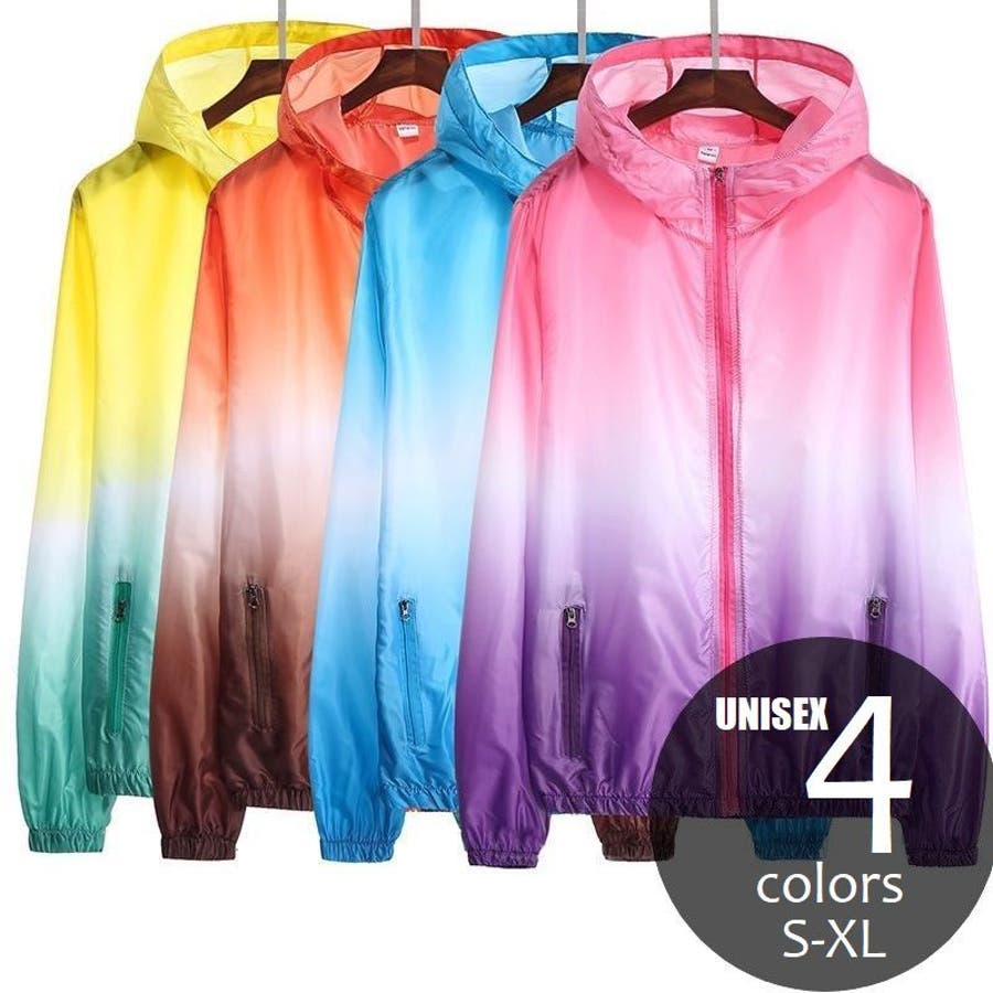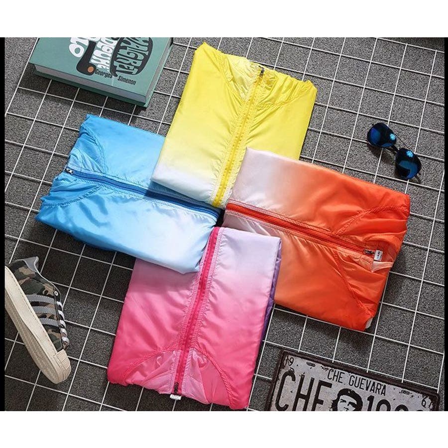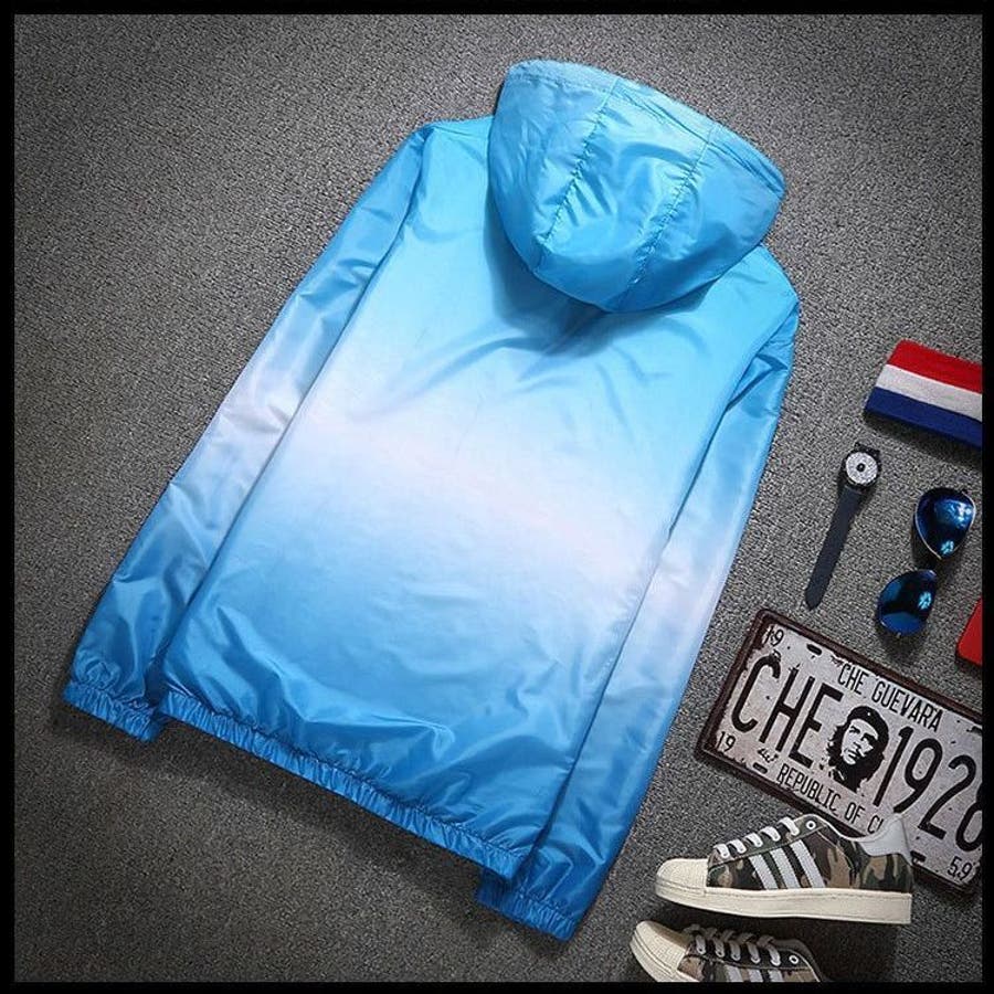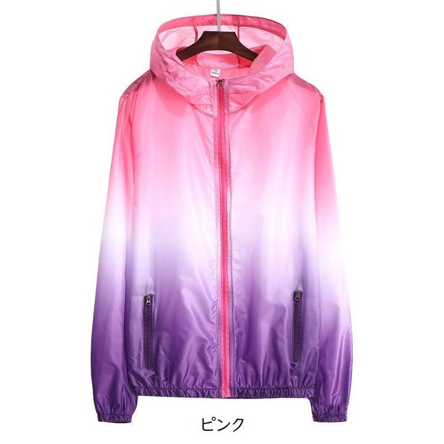 グラデーションカラーのジップフーディ。