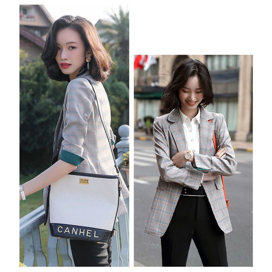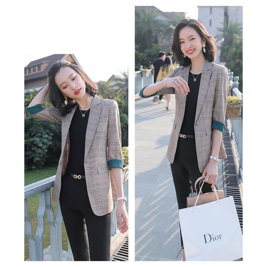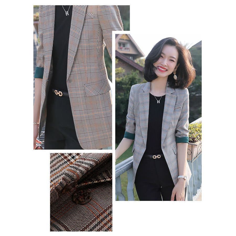チェック柄のレディース用テーラードジャケットです。