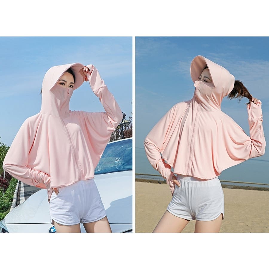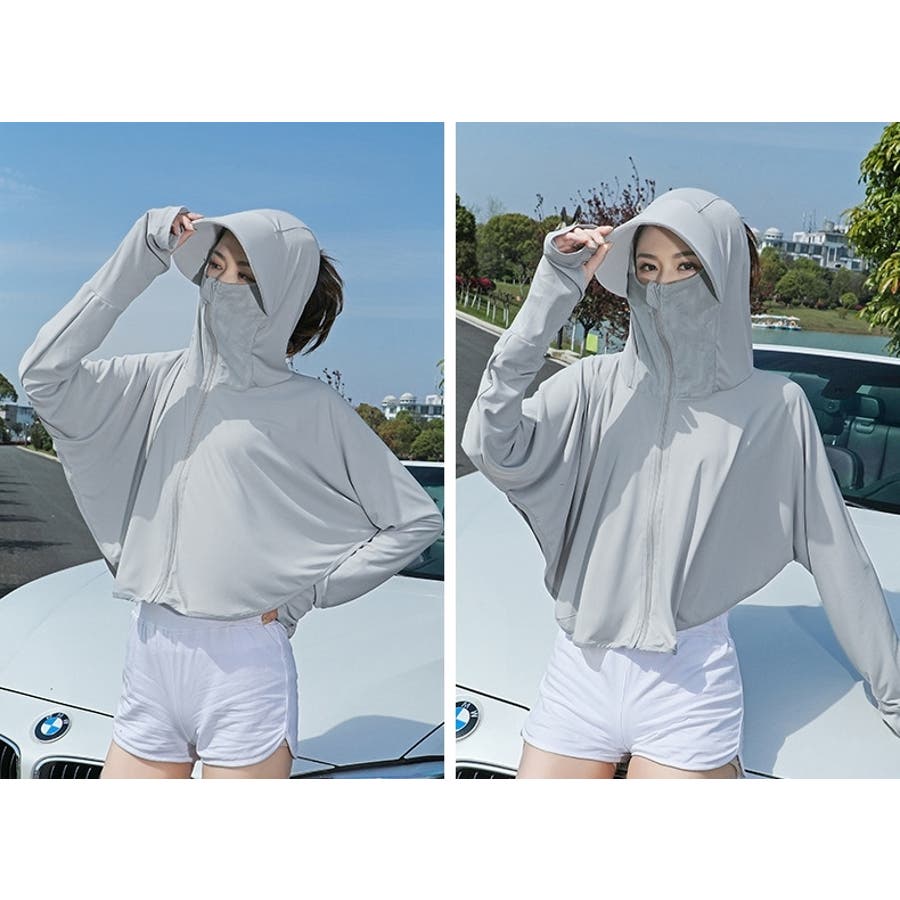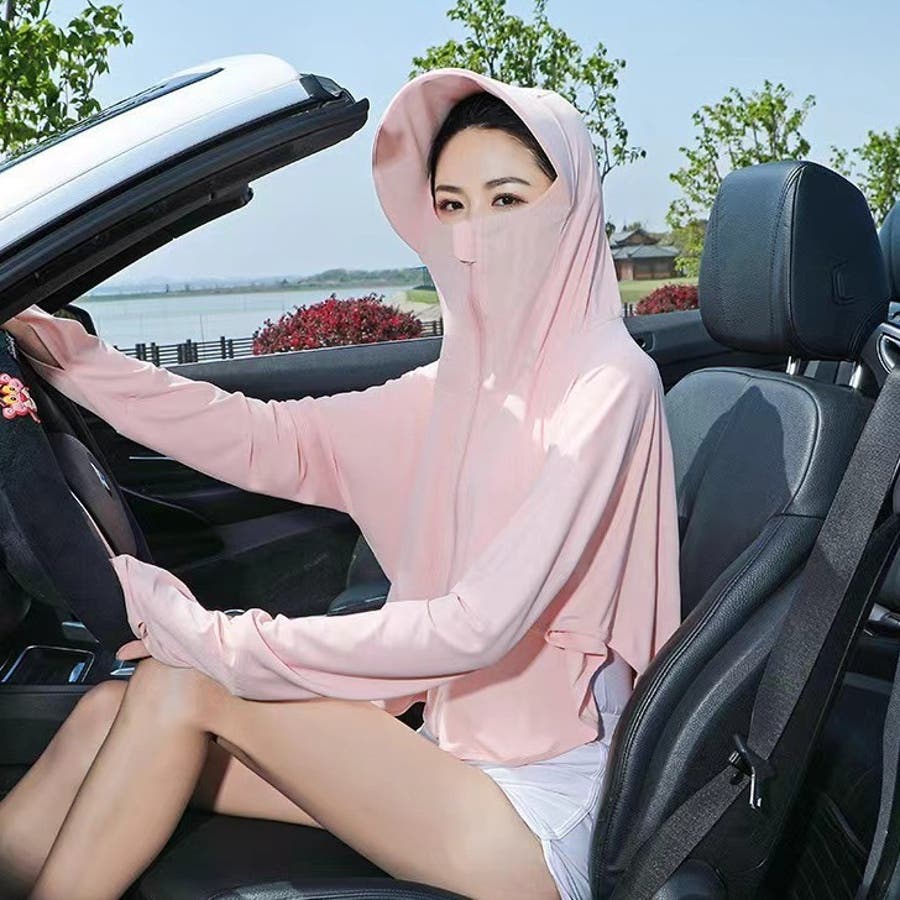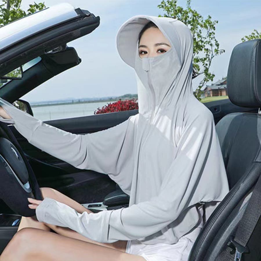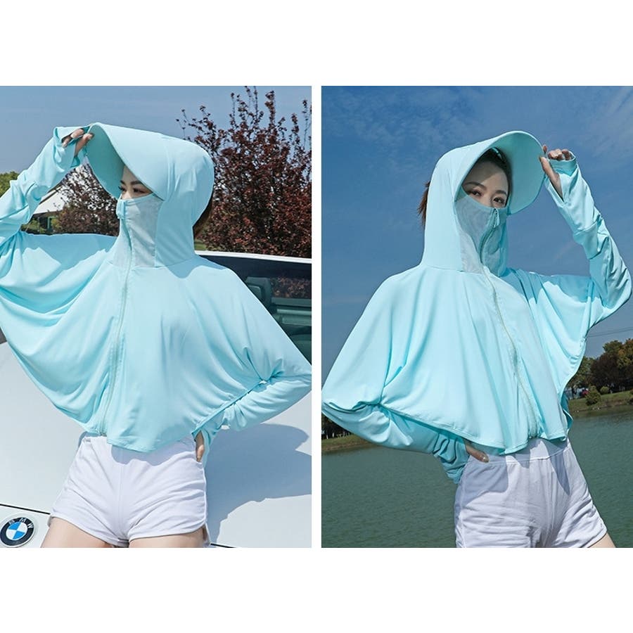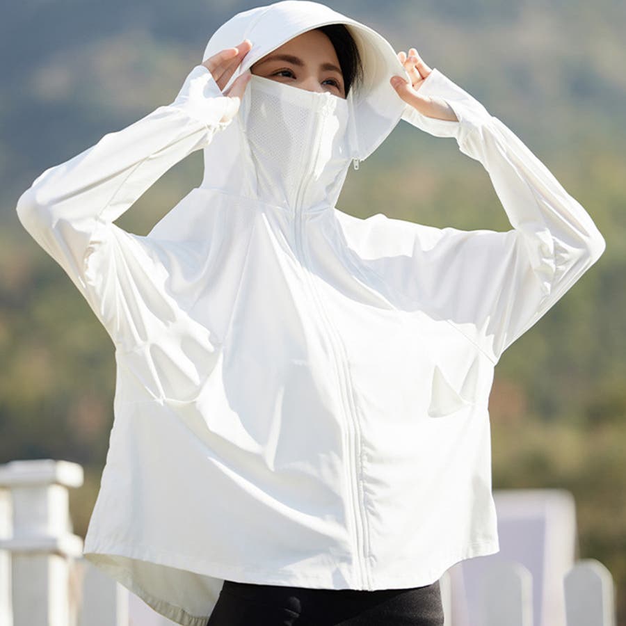 顔や首回りまでしっかりガードするフェイスカバー付き☆