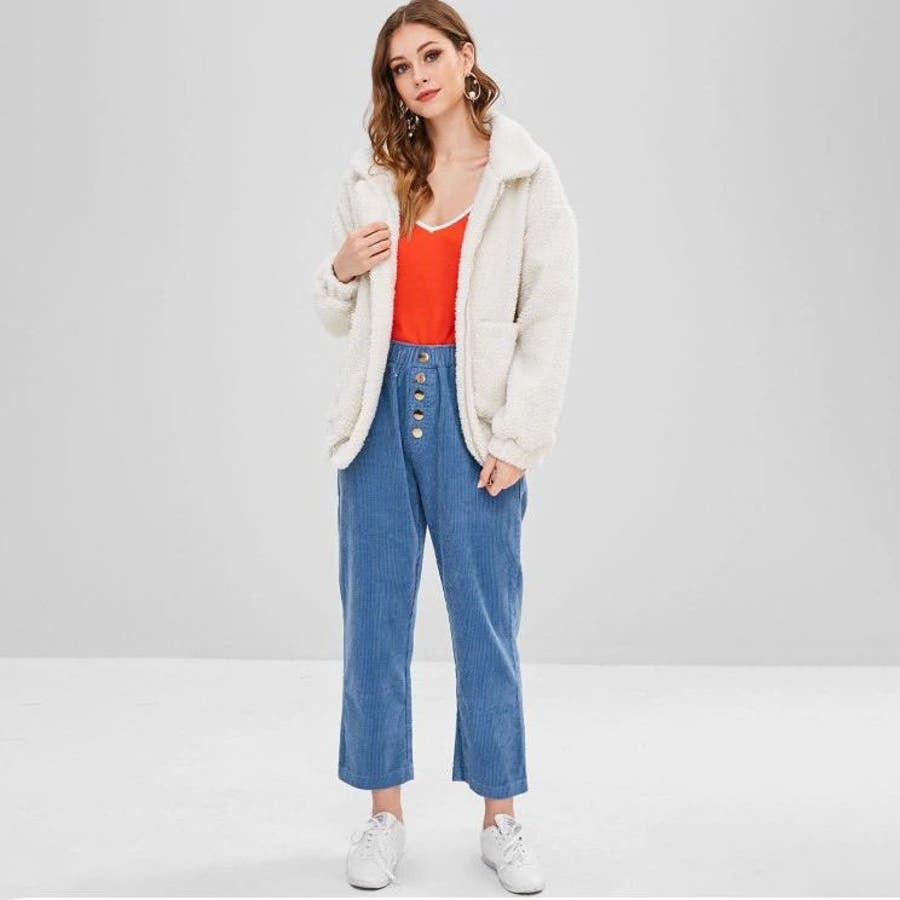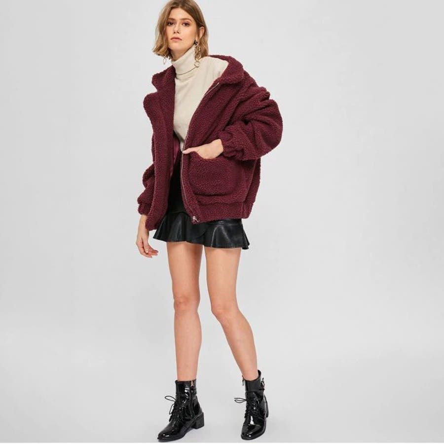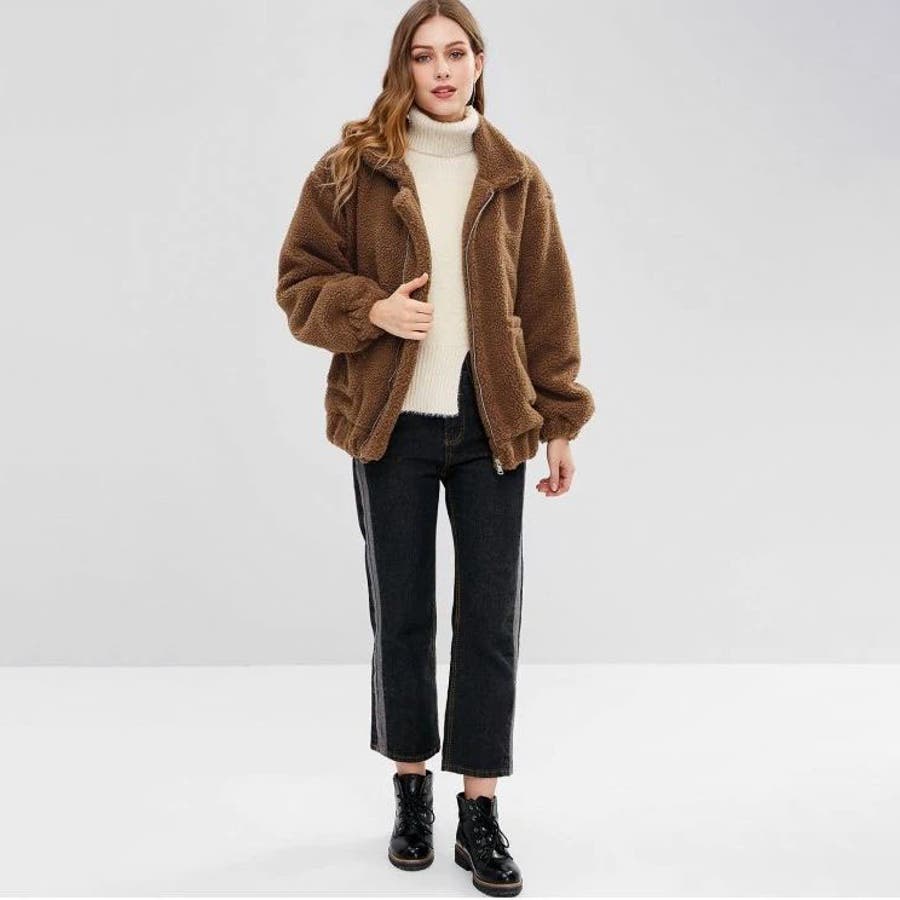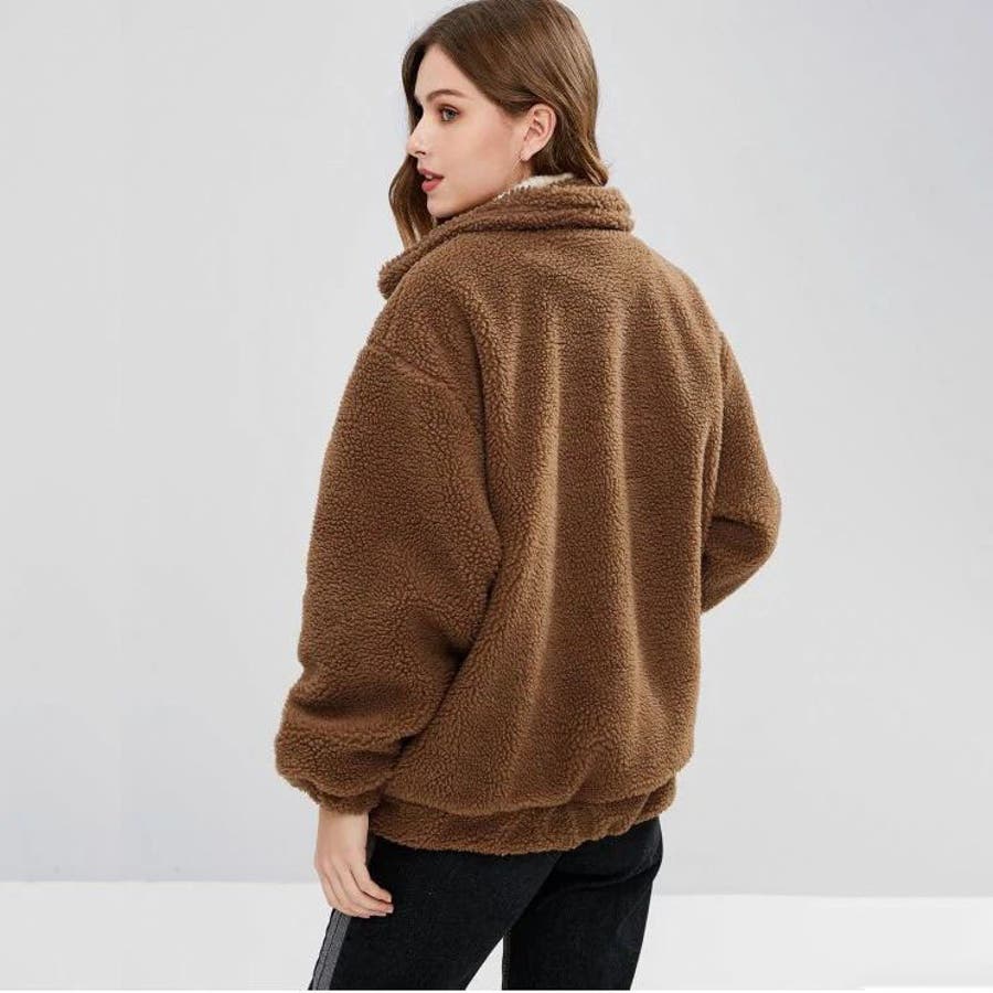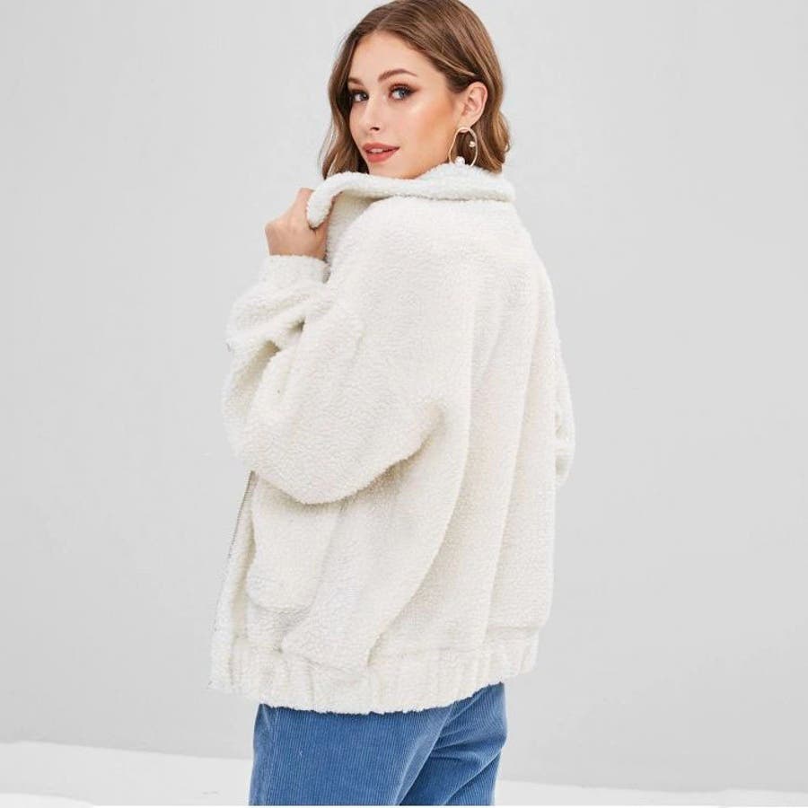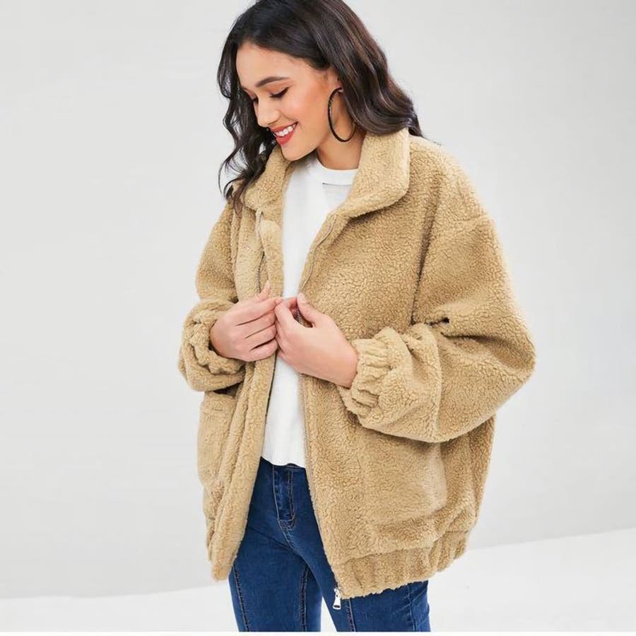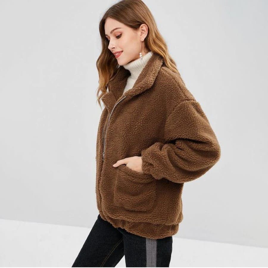 モコモコしていますが生地は意外と薄く、裏地がないので中に着ないと風を通して寒いです。