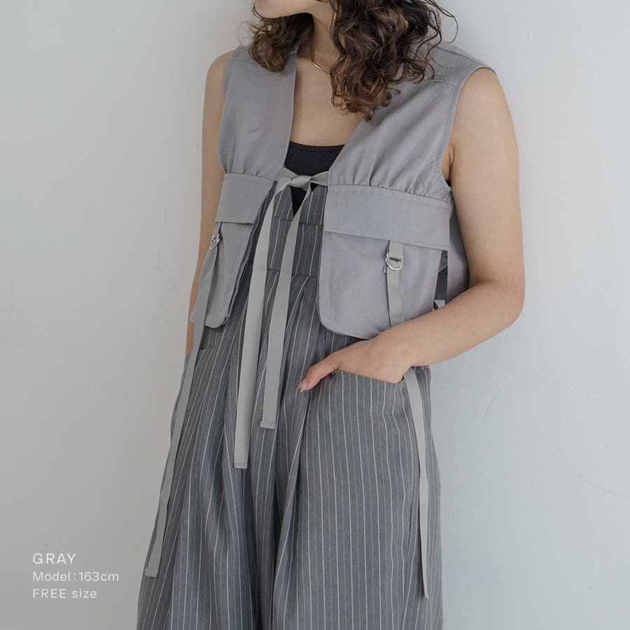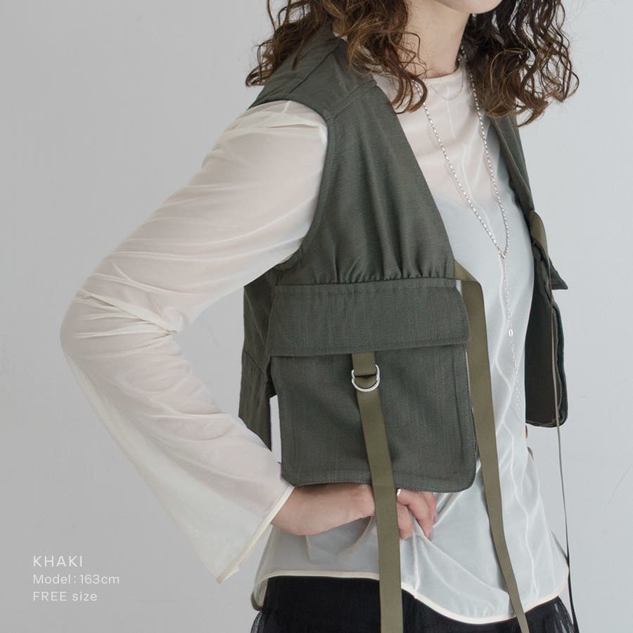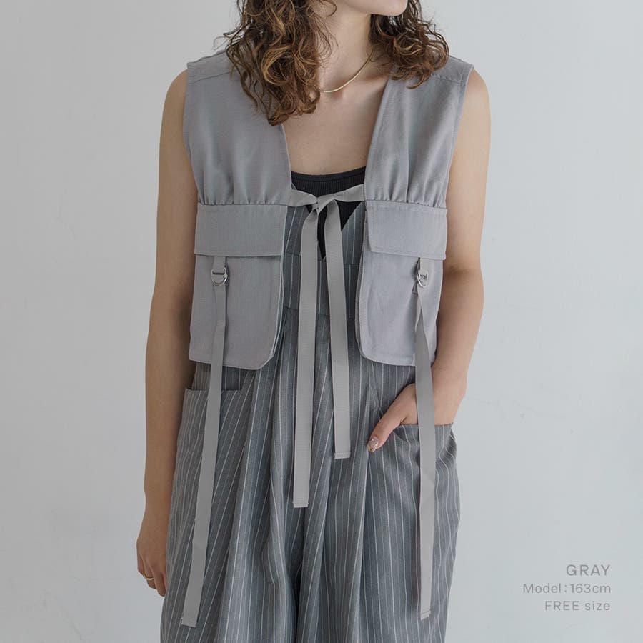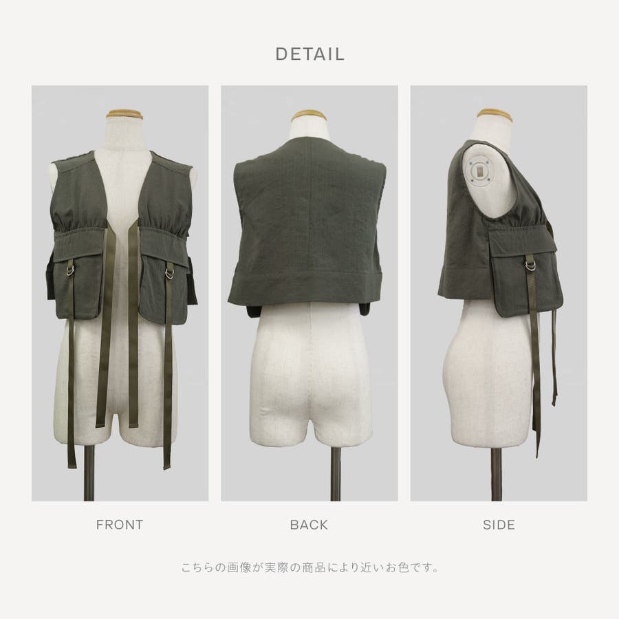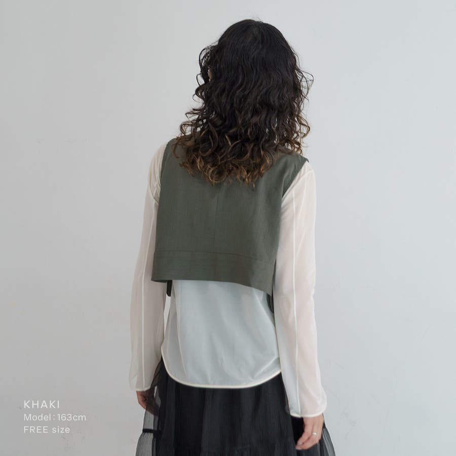 前はリボンでカジュアル過ぎないディティールを入れ、ショート丈でバランスもとりやすく着ていただけます。