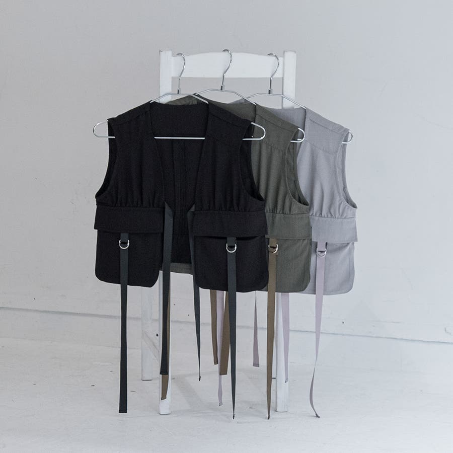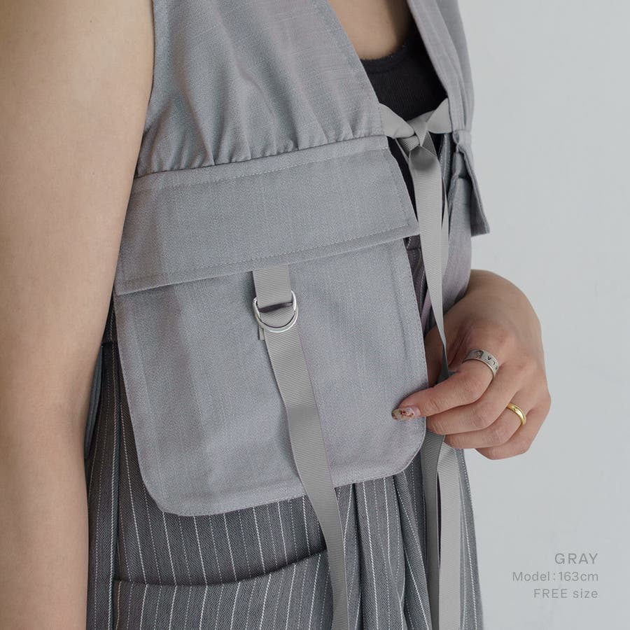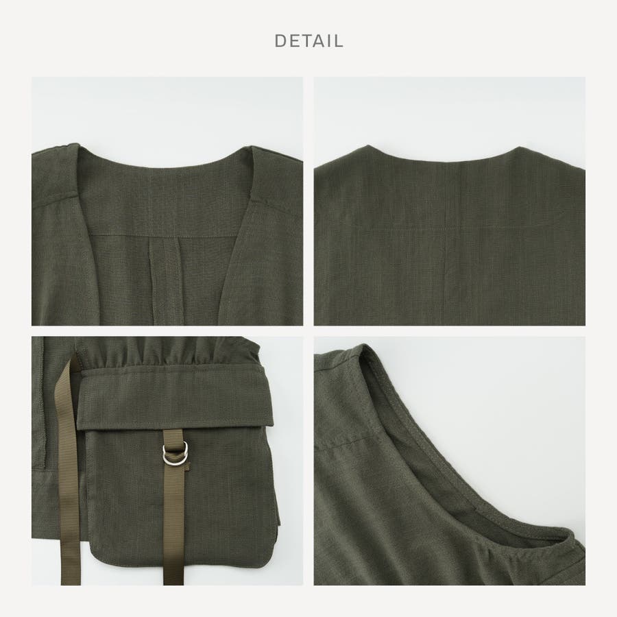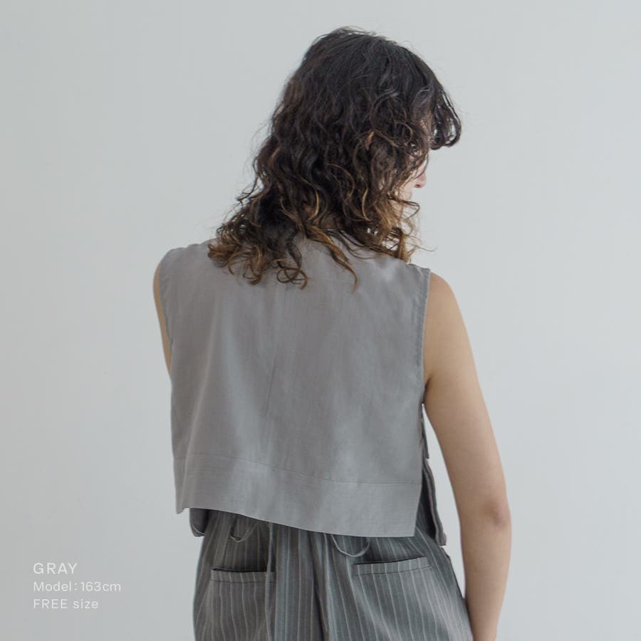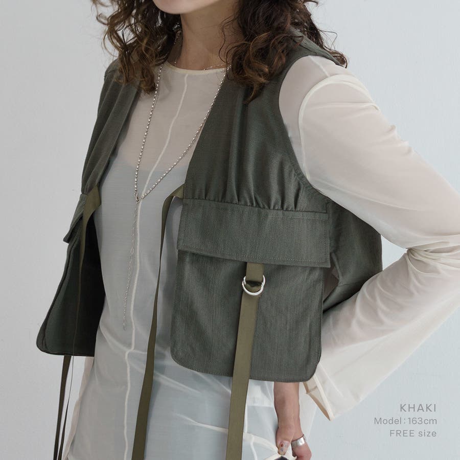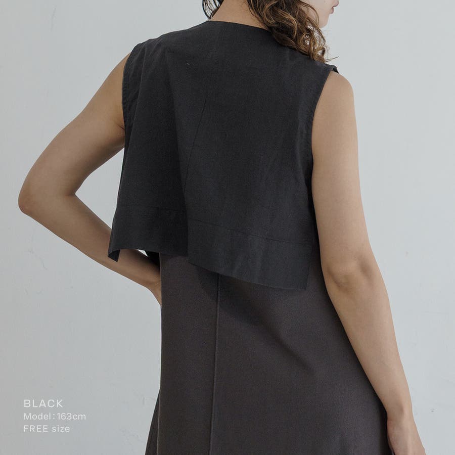 前はリボンでカジュアル過ぎないディティールを入れ、ショート丈でバランスもとりやすく着ていただけます。