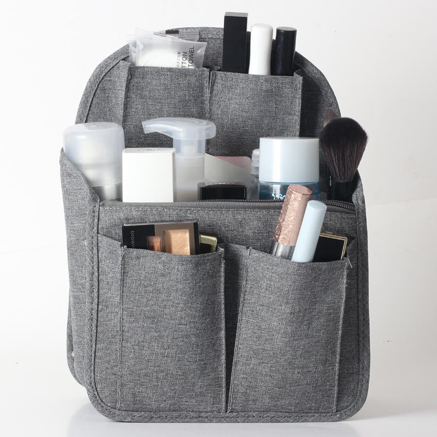 旅行の時のメイク道具を入れたり、ポケットがたくさんついているのでバッグの整理にバッグインバッグとしてお役立てください。