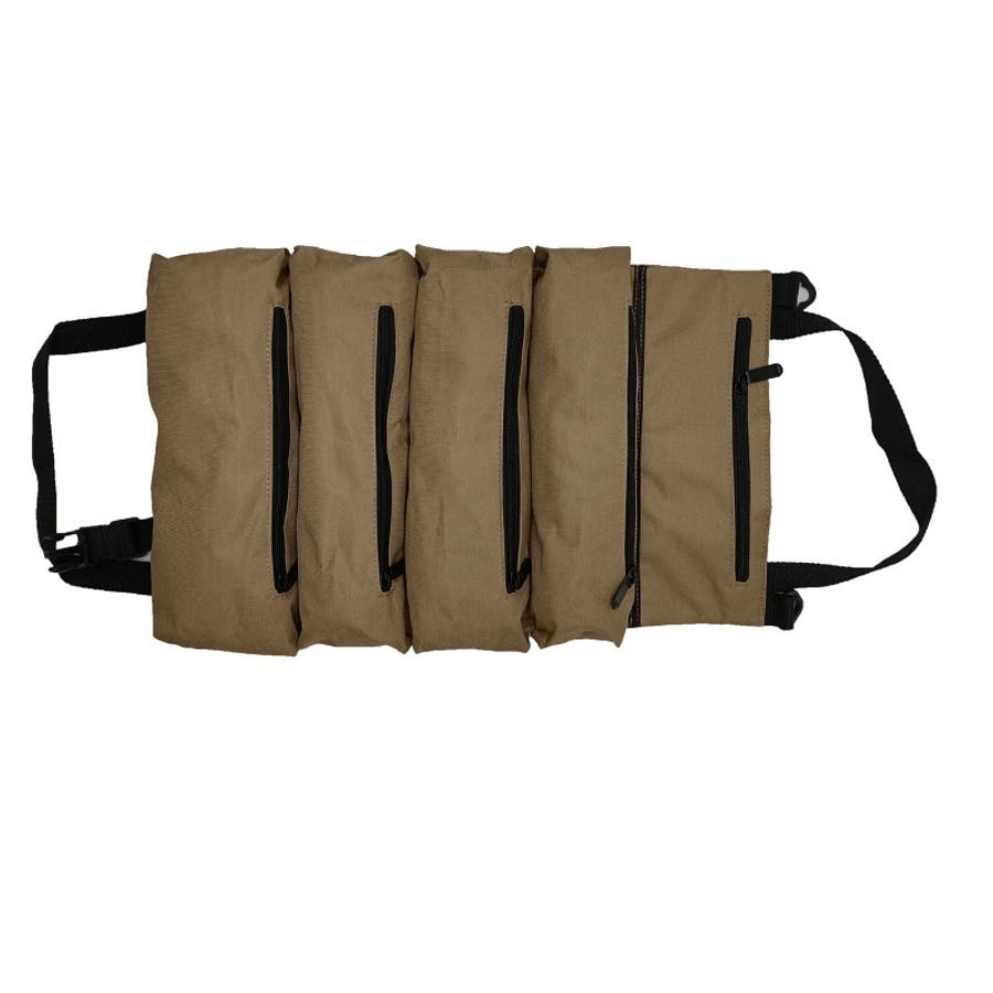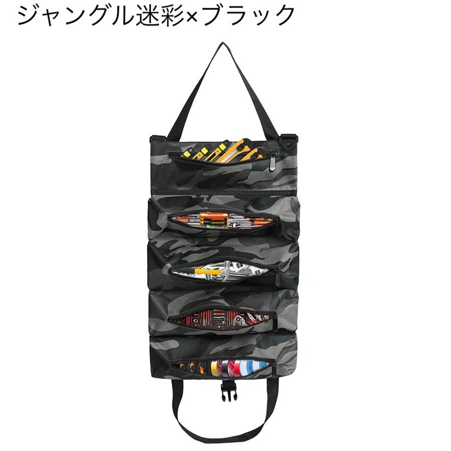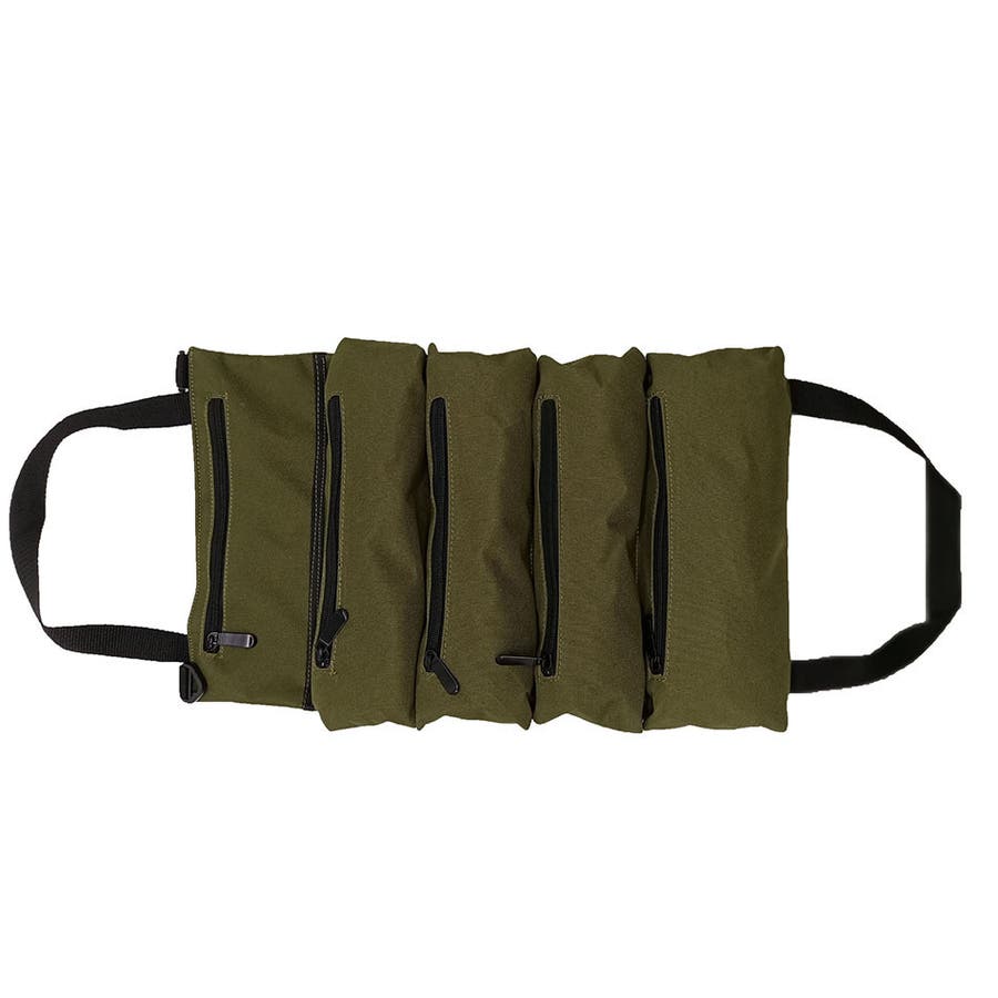 ファスナー付きの5つのポケットで工具の種類や用途別などに分類して収納できます。