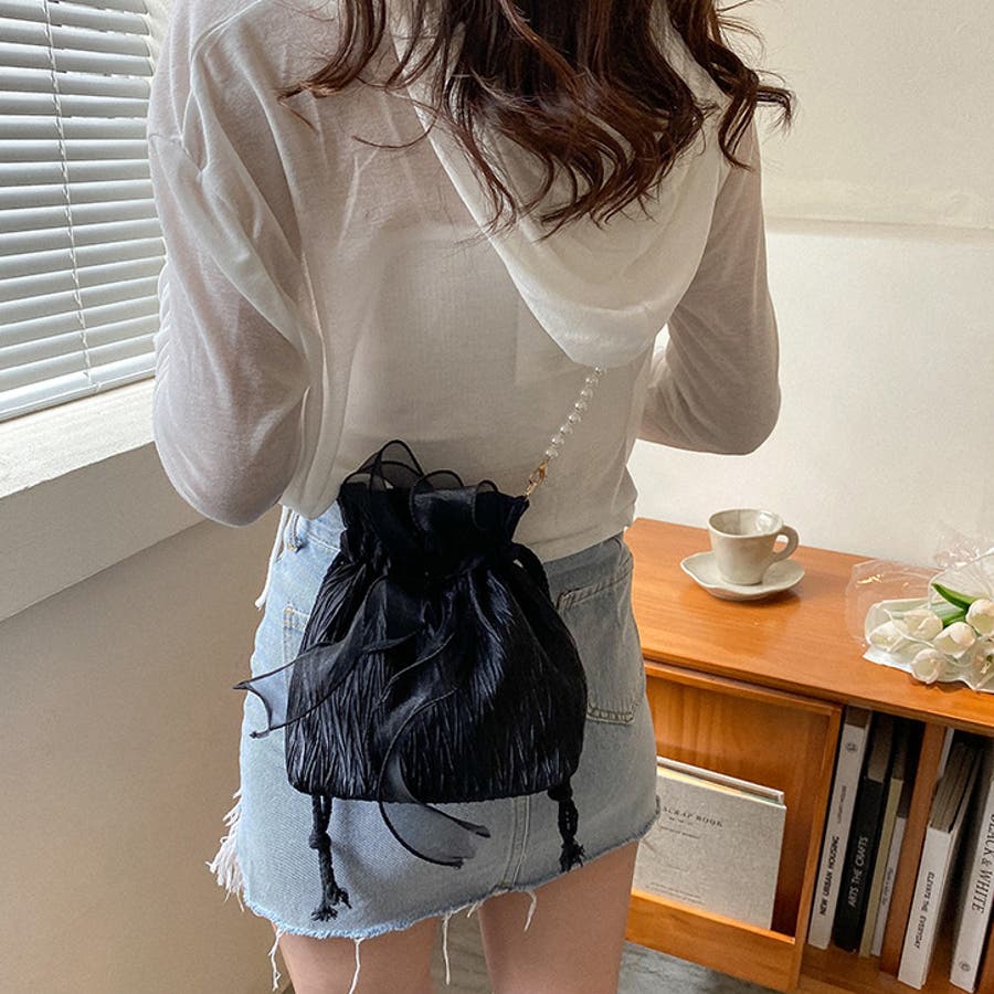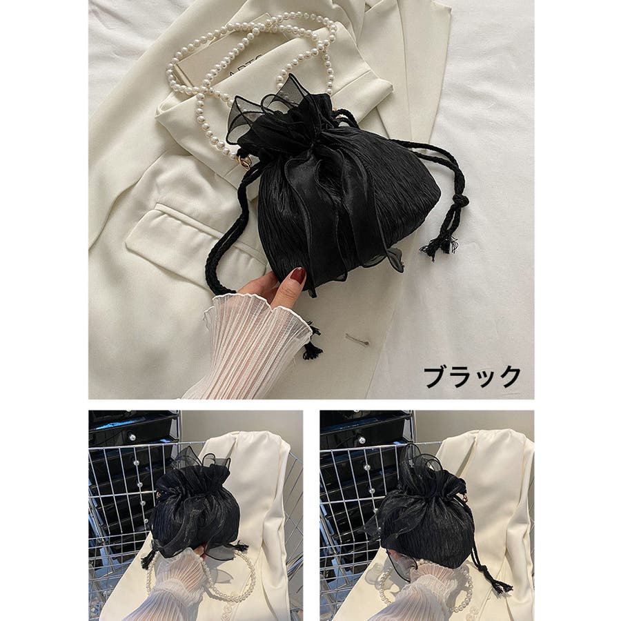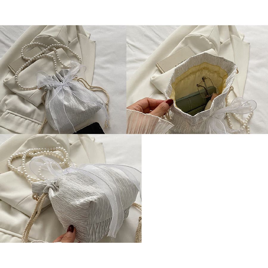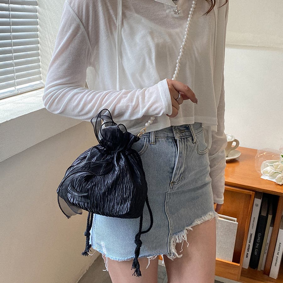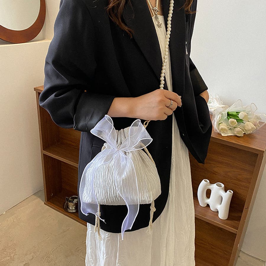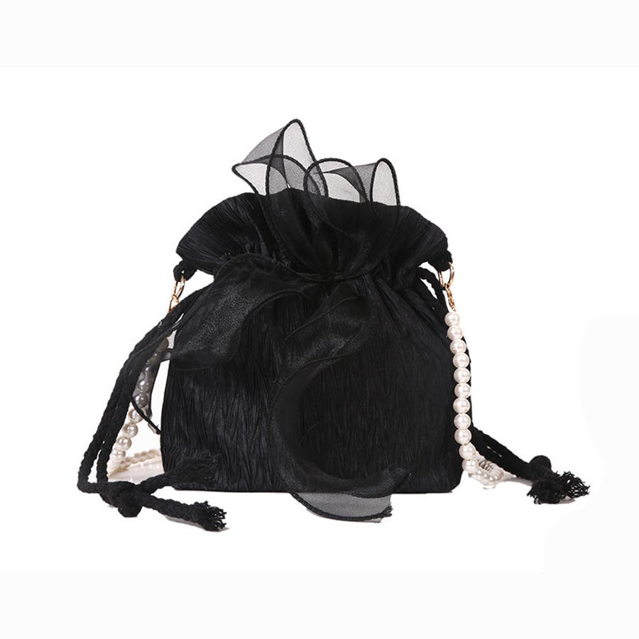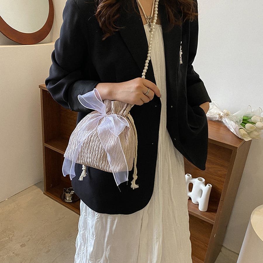 フェイクパールのチェーンと大きなリボンがアクセントに♪