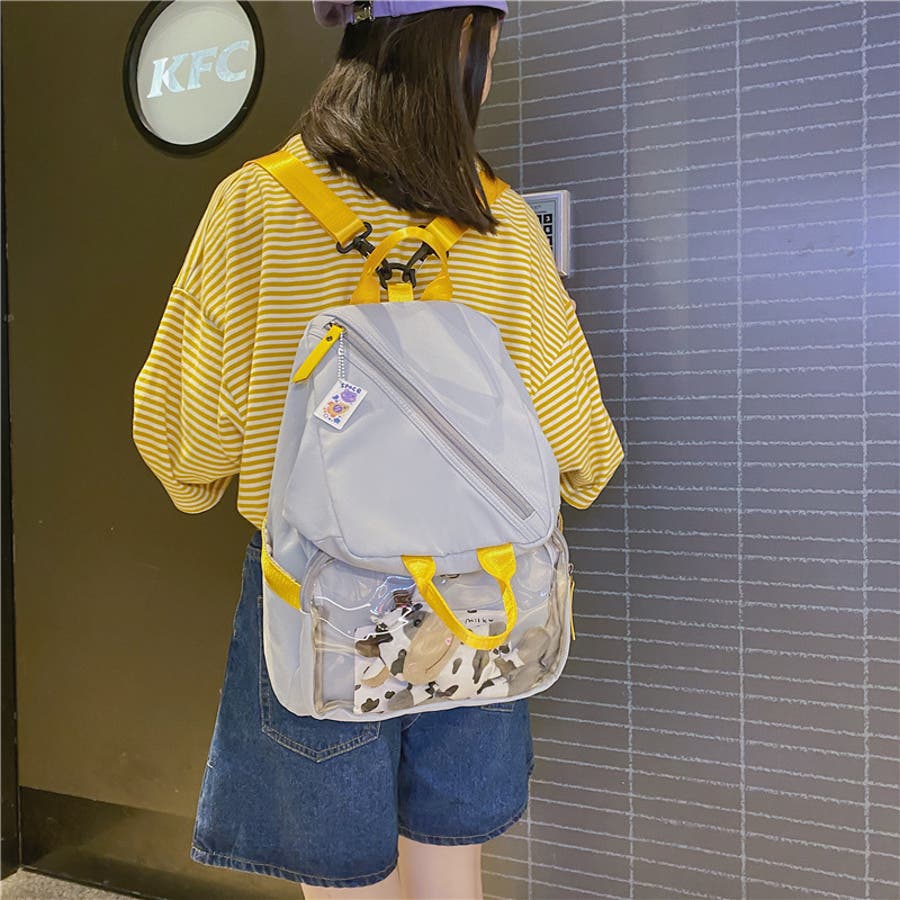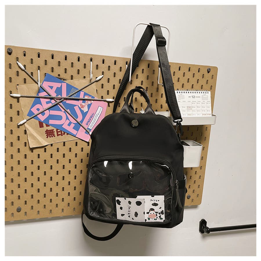 シンプルな無地のデザインで、フロントのクリアポケットが特徴的♪