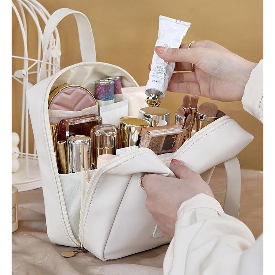 ロングファスナーでガバッと開いて中の物が取り出しやすい◎