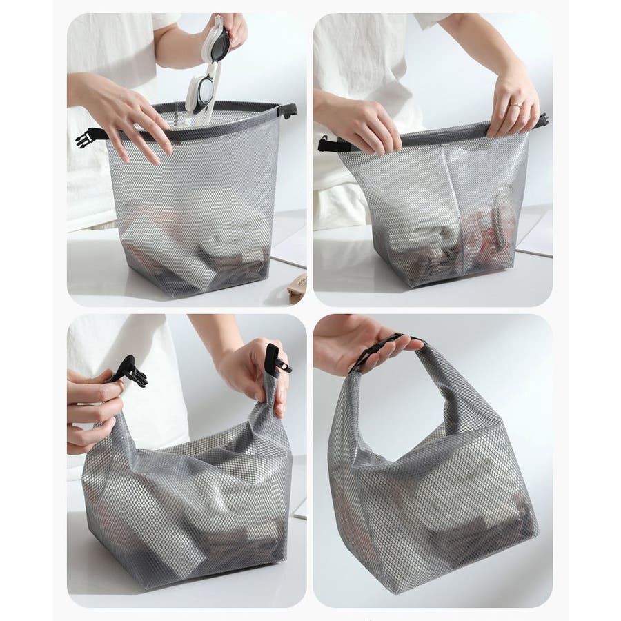 半透明で中が見やすい防水&大容量のメイクポーチです。
