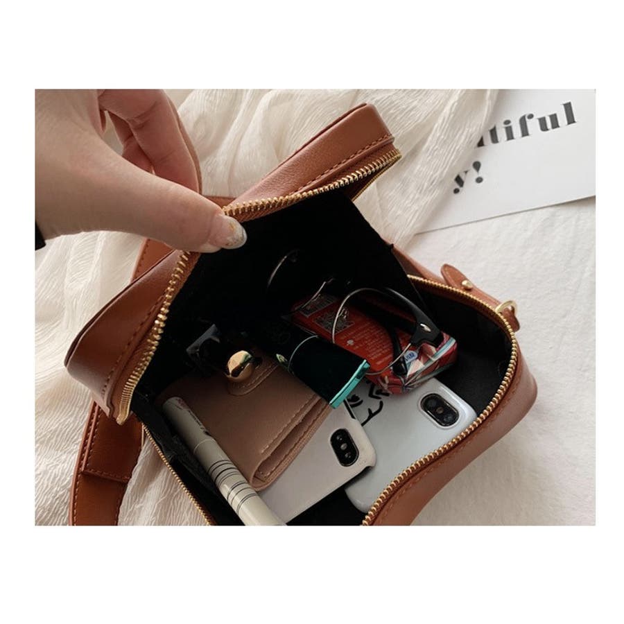トースト型のショルダーバッグはしっかりとマチがあり、幅のあるポーチやコスメも収納可能。