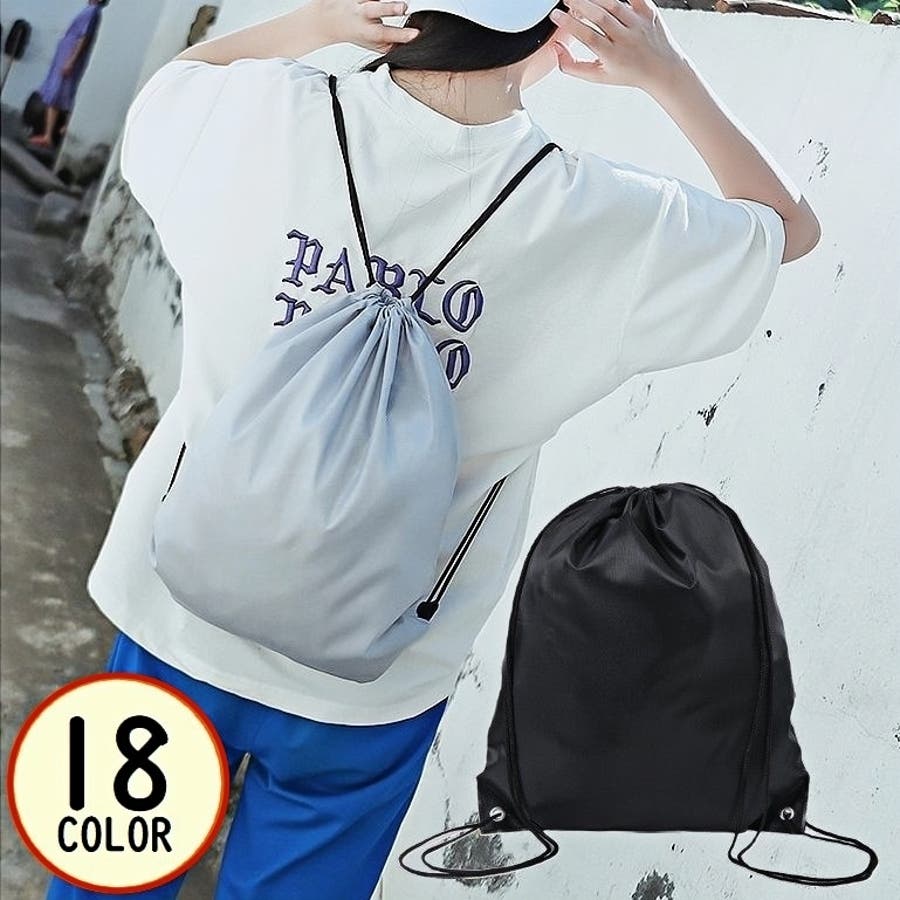 ユニセックスなシンプル無地の男女兼用ナップサックです。