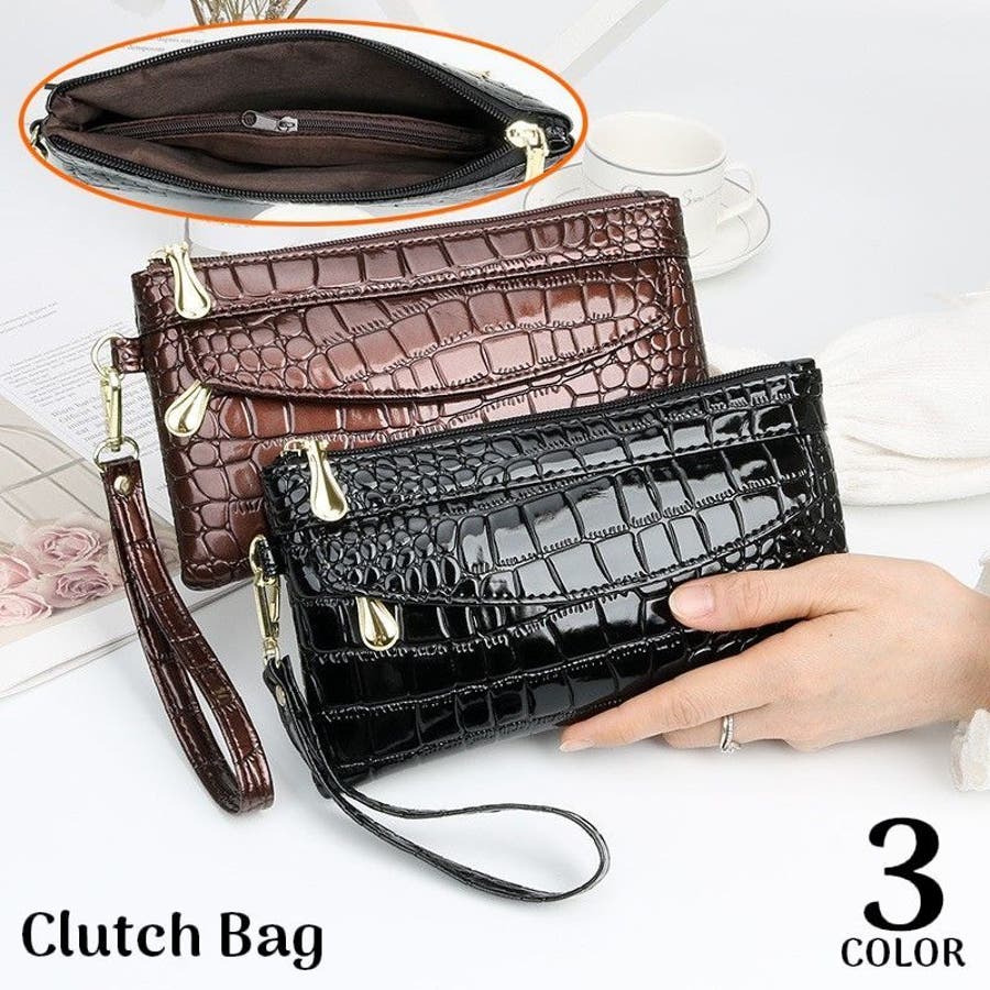 落下防止にも便利なストラップ付きクラッチバッグです。