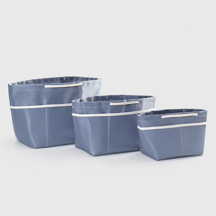 大小様々なポケット付きで整理整頓がしやすく、自立型だから出し入れも楽々!
