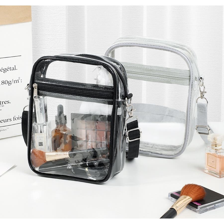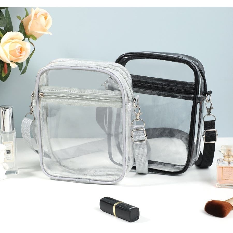 濡れても大丈夫なビニール製のクリアバッグです。