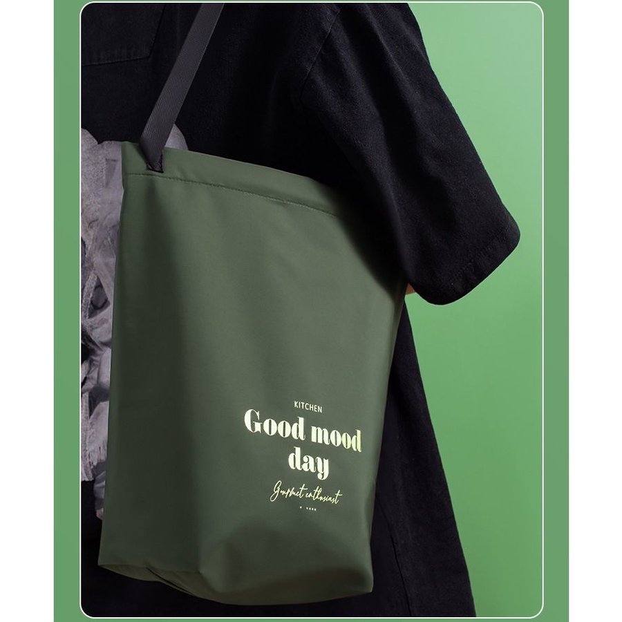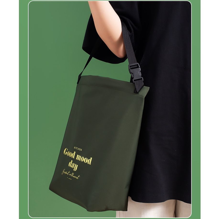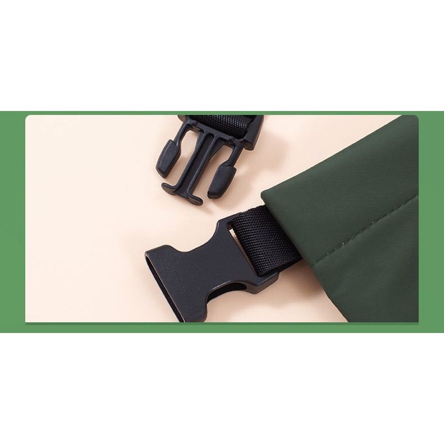 縦長のデザインに加え、付属のベルトを調節すれば巾着バッグとして持ちやすくなります。
