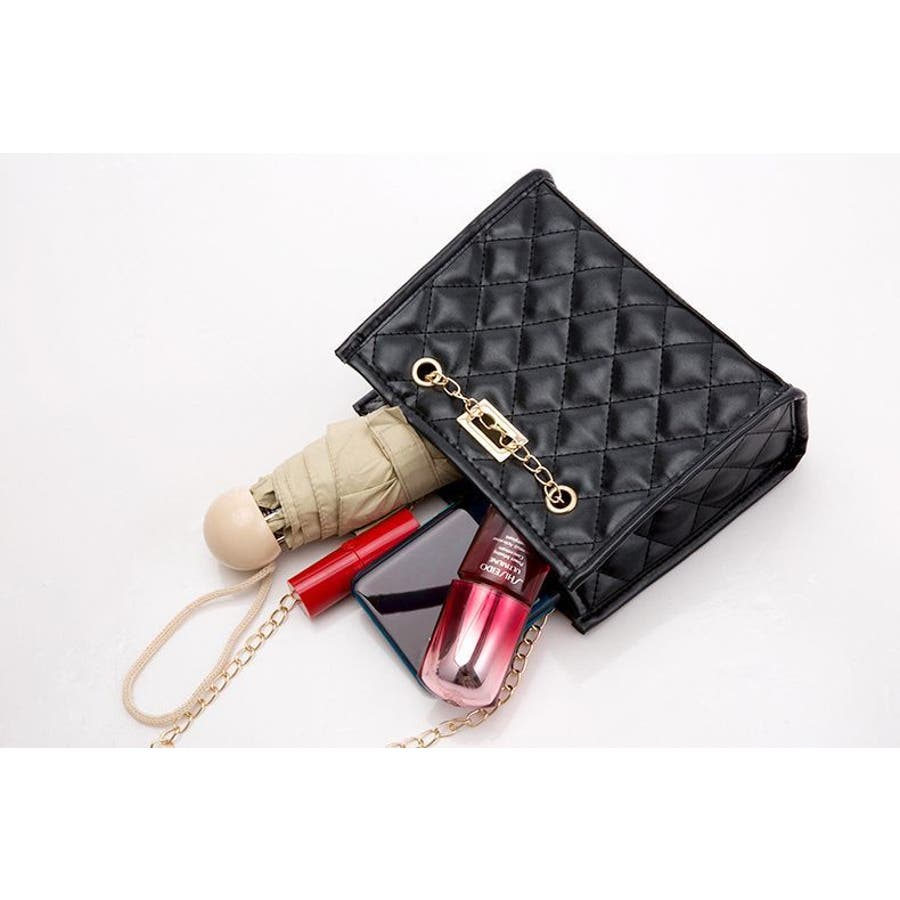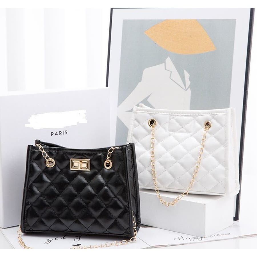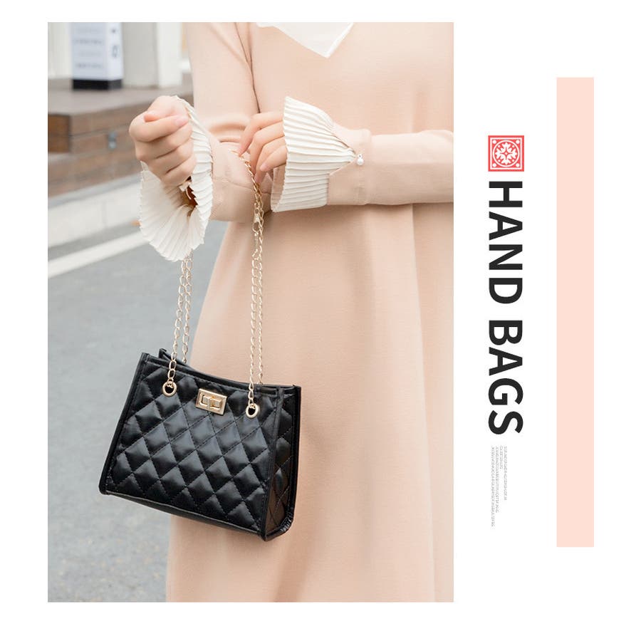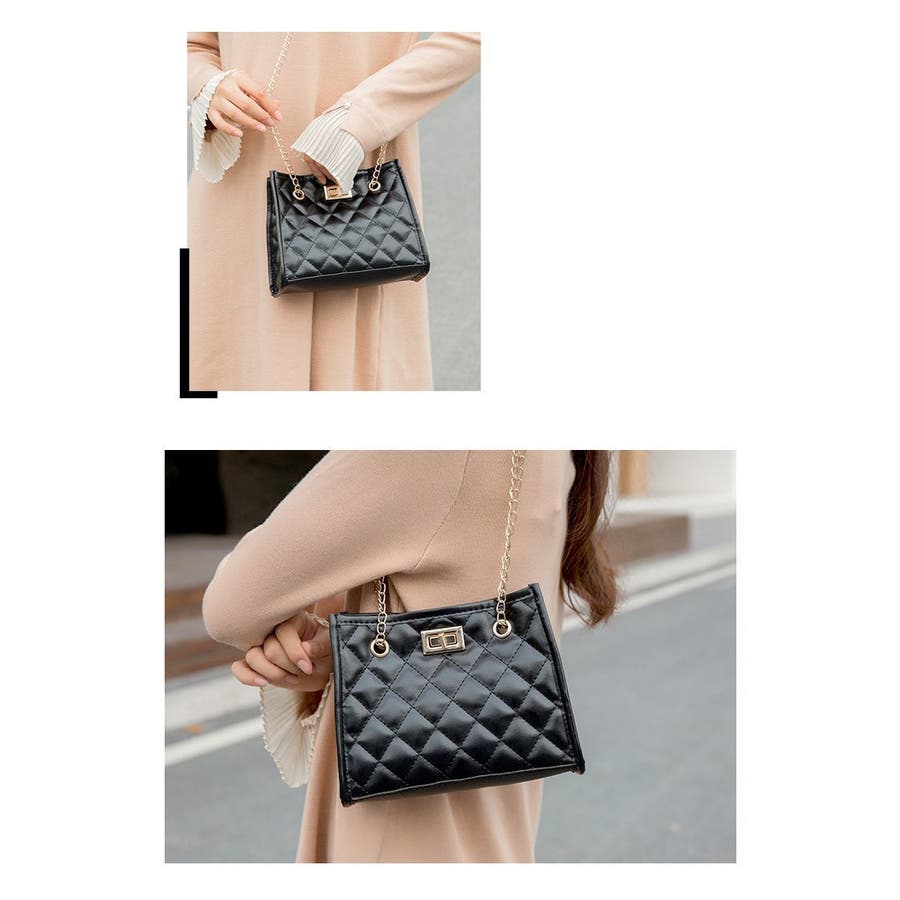 レザー調のキルティング×チェーンの組み合わせが大人かわいい印象です♪