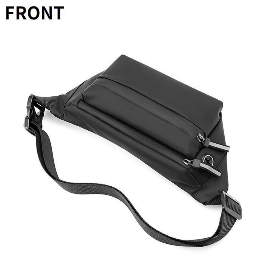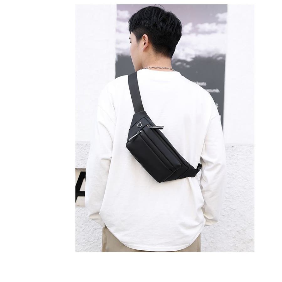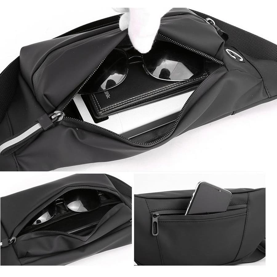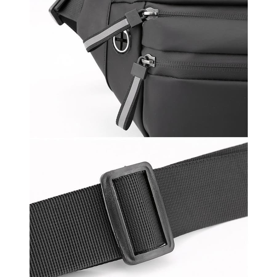 夜間も安心な反射材付きの男女兼用ボディバッグです。