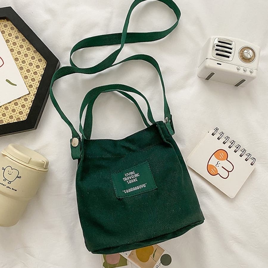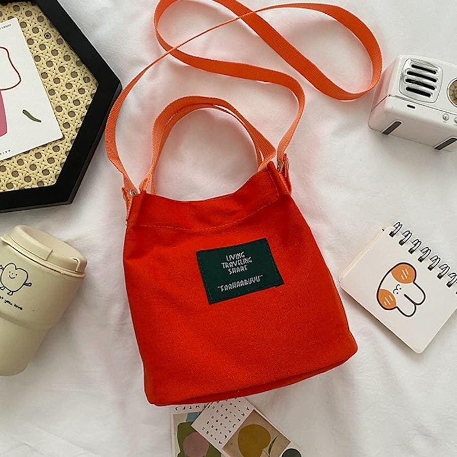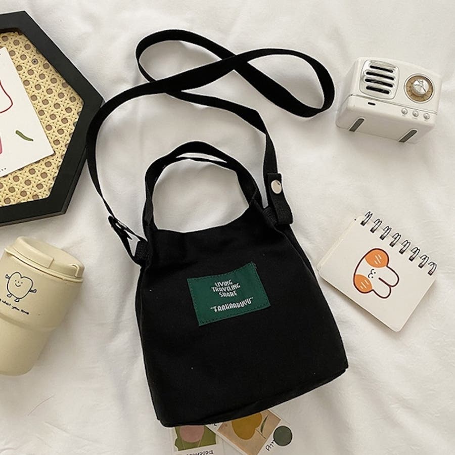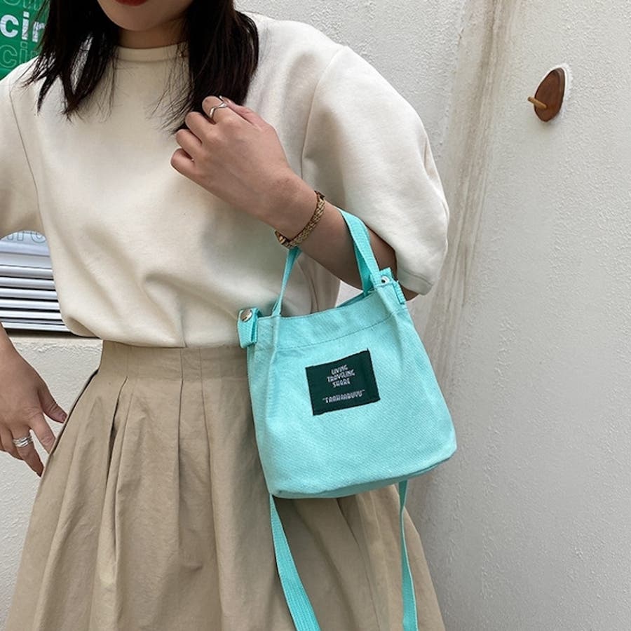 ちょっと買い物に行く時にいいかなと思って購入しました。サイズ感はちょうどいいのですが、口が狭いので物を取り出しにくいのが残念でした。