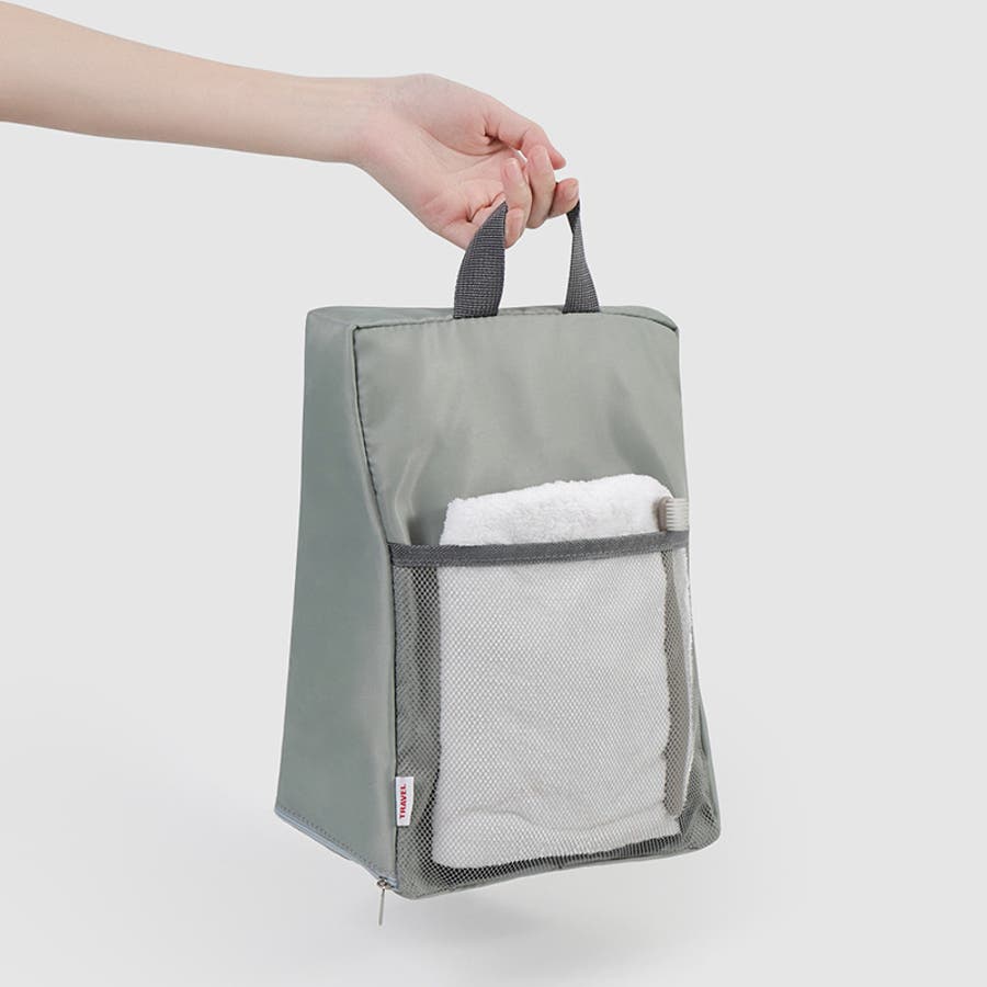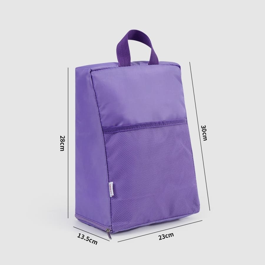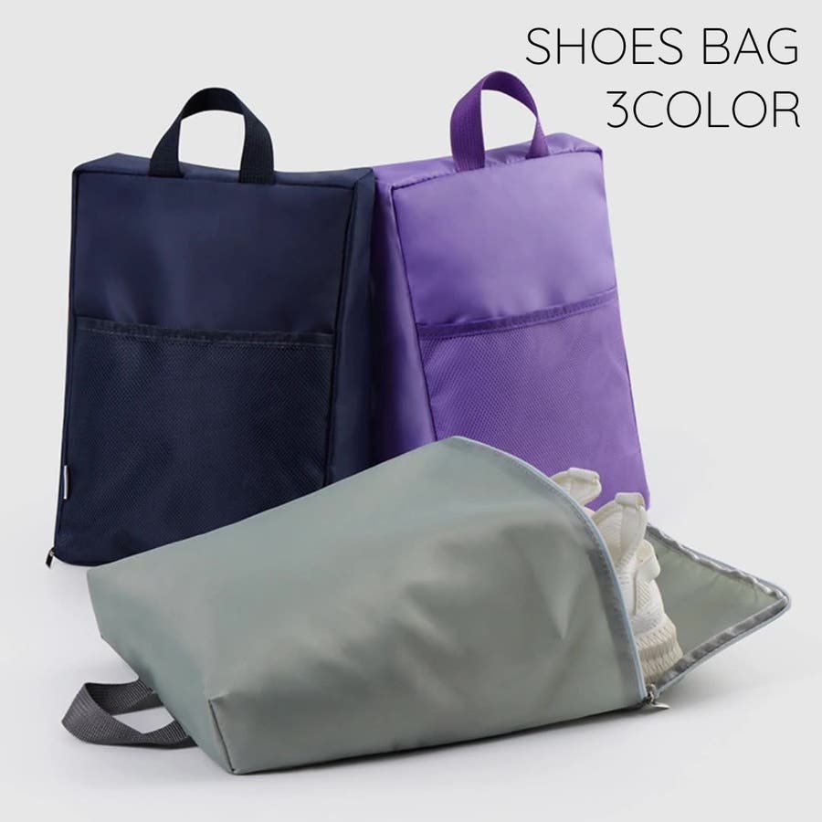 シンプルなデザインの子供から大人まで使えるシューズバッグです。