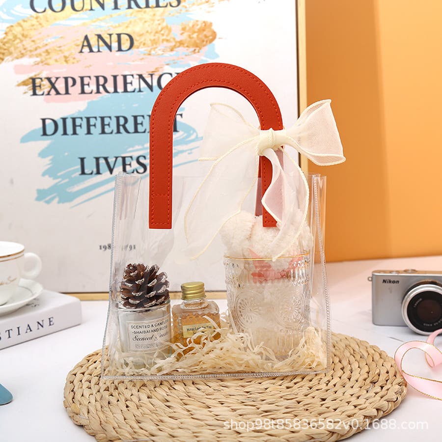 中身が見えるクリアデザイン!手提げ袋タイプのギフトバッグです。